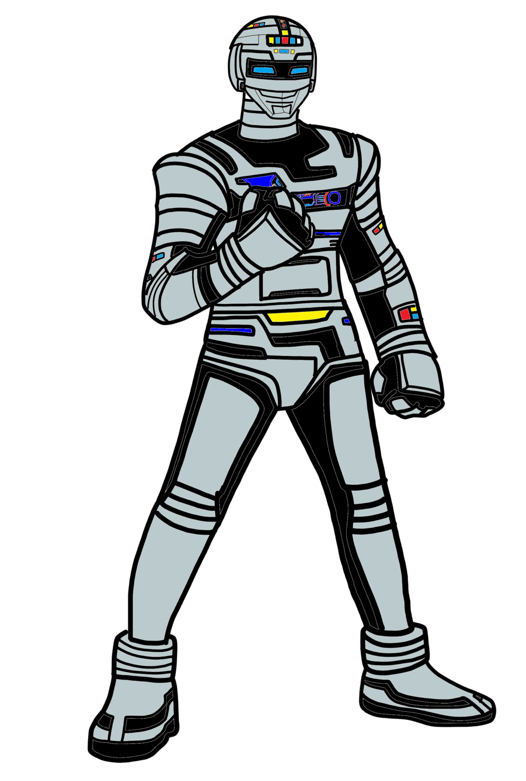 Description: A cartoon character in a space suit with a helmet and boots on.