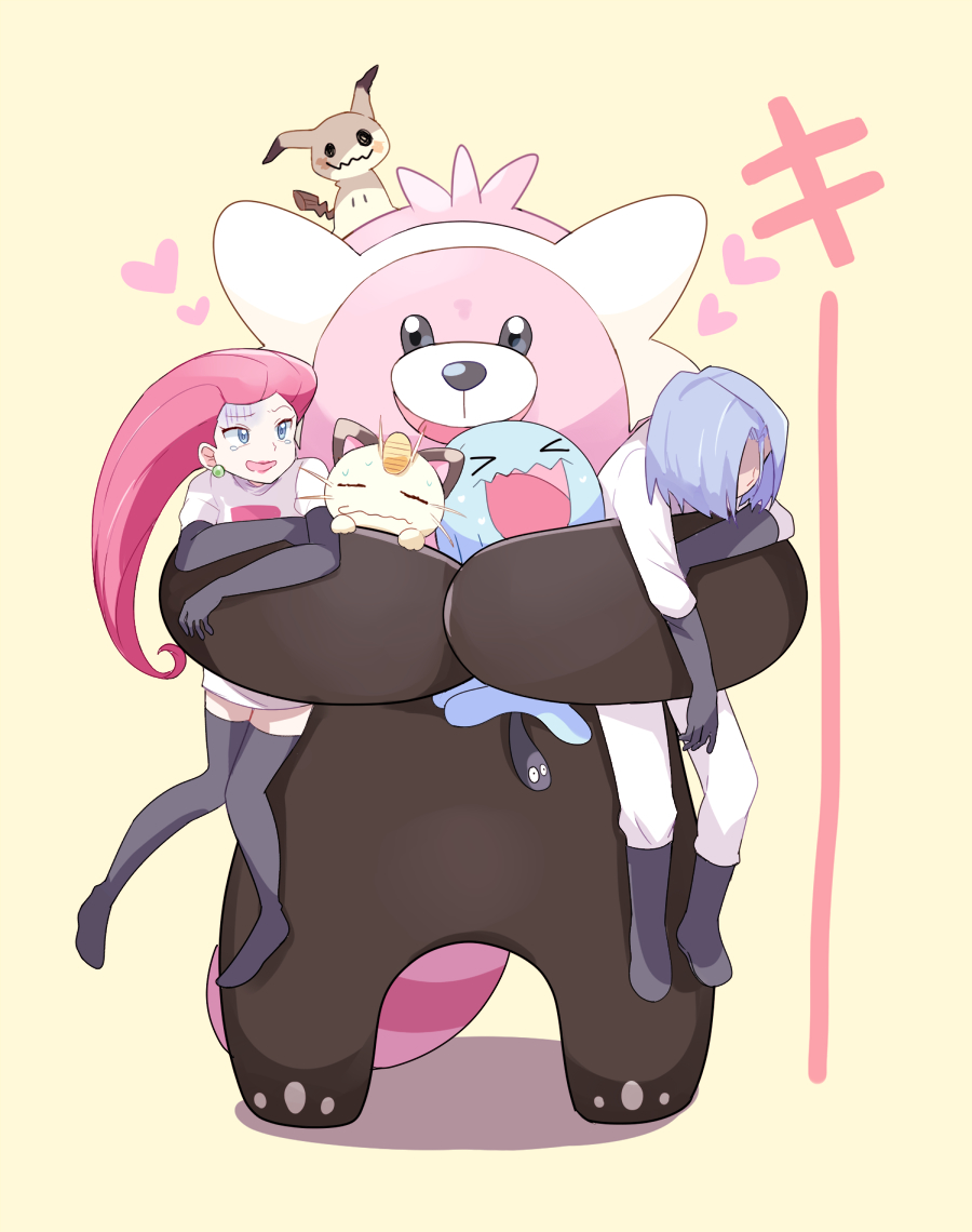 Description: A cartoon character holding a stuffed animal in a bear costume with other characters around it and a dog on top of it.