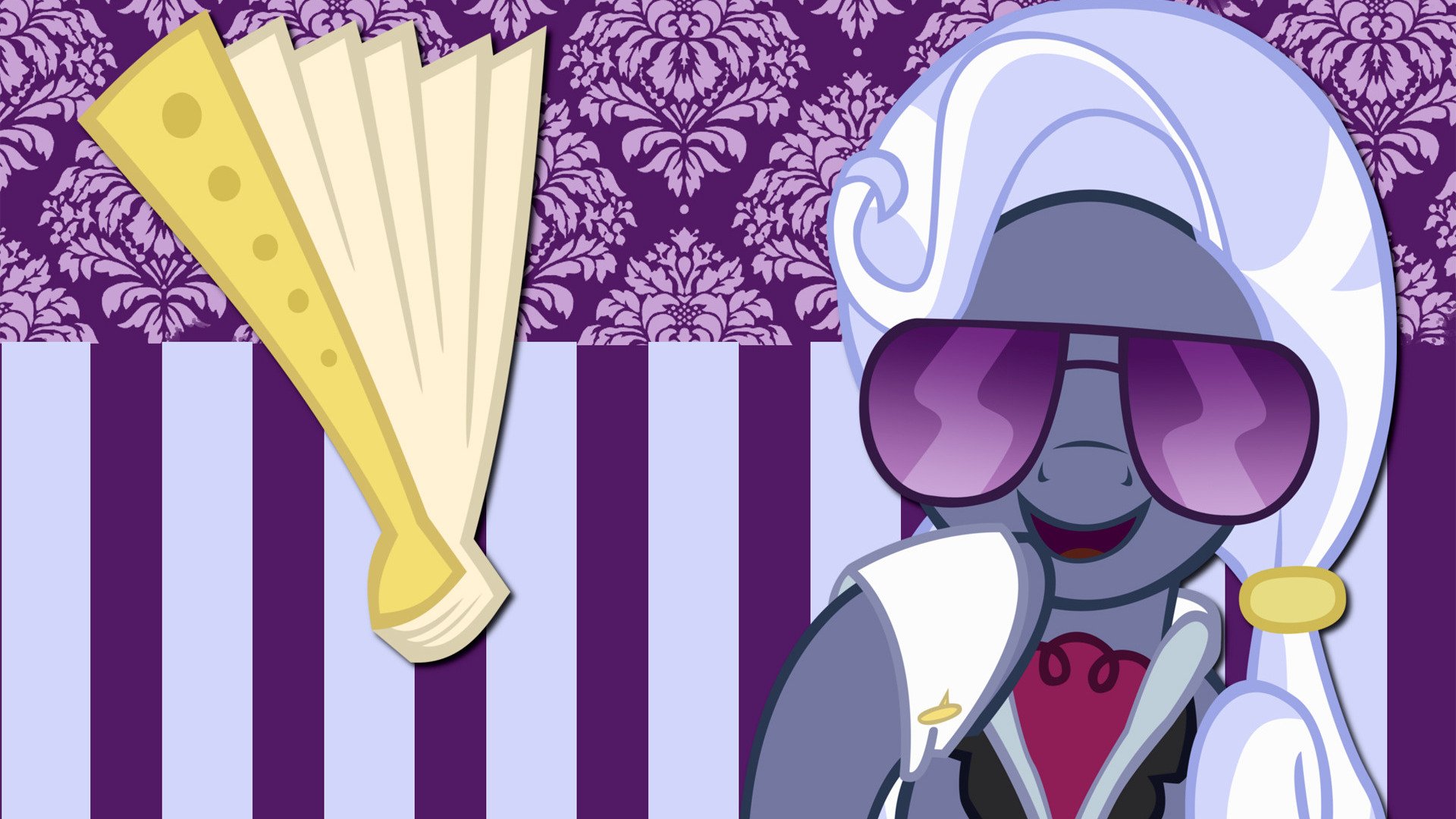 Description: A cartoon character wearing sunglasses and a hat with a piece of cheese on it's head and a piece of pizza in his hand.