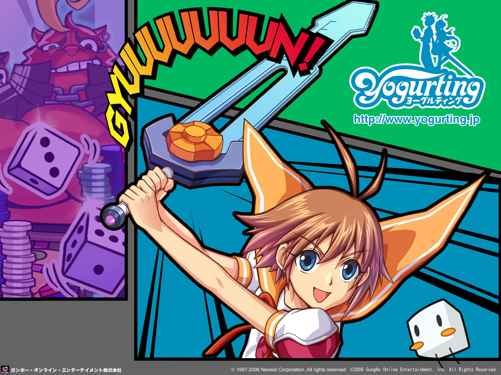 Description: A cartoon character holding a sword and a dice in front of a cartoon character with a dice in the background.