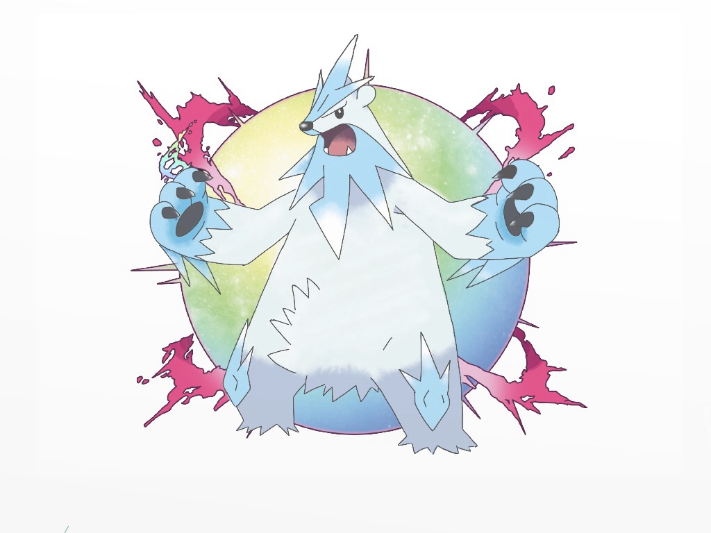 Description: A cartoon character with a white background and a blue and white background with splats on it.