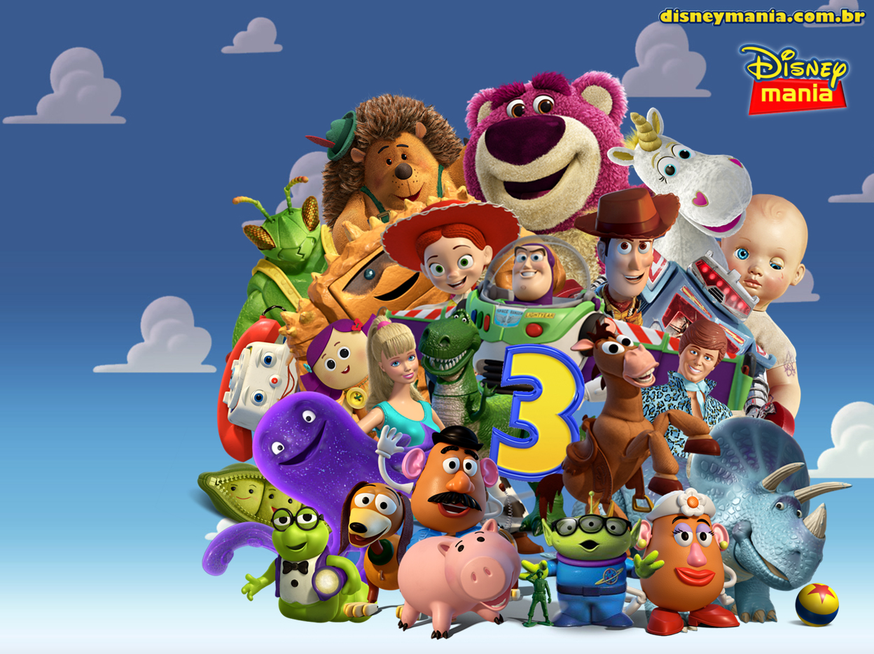 Description: A group of cartoon characters standing in front of a blue sky with clouds and clouds behind them.