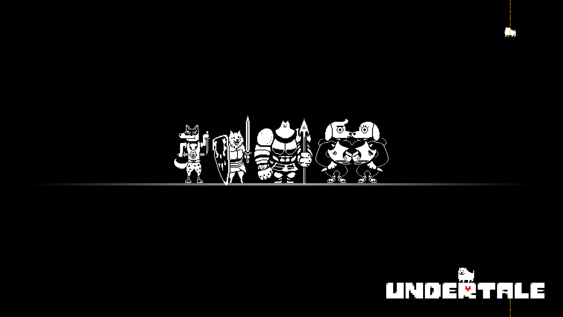 Description: A group of cartoon characters standing in the dark with a black background and a white line of characters behind them.