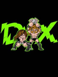 Description: A couple of cartoon characters with green letters on a black background with the word dxr on it.