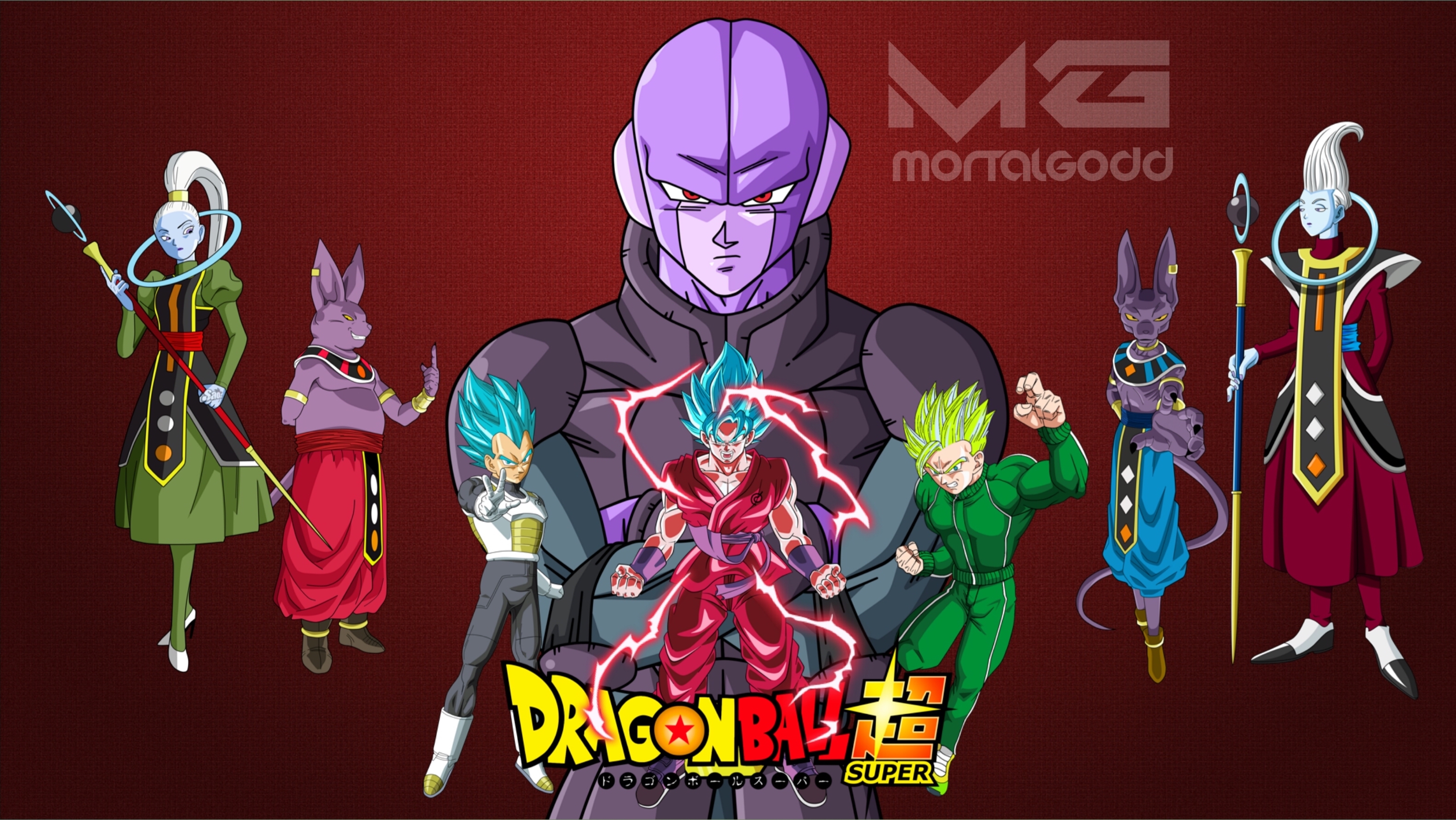 Description: A group of cartoon characters standing next to each other in front of a red background with the words dragon ball.