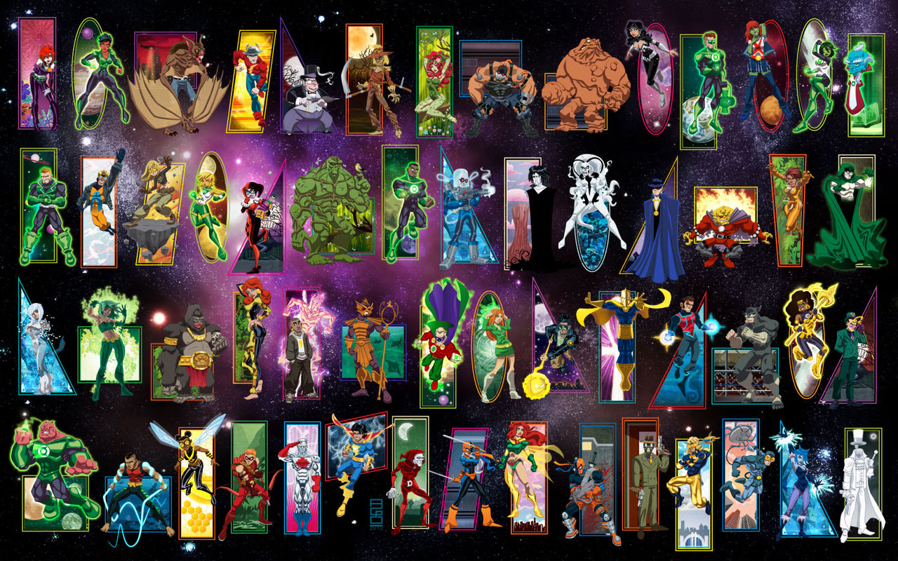 Description: A collage of cartoon characters in space with stars in the background and a space background with a variety of characters.