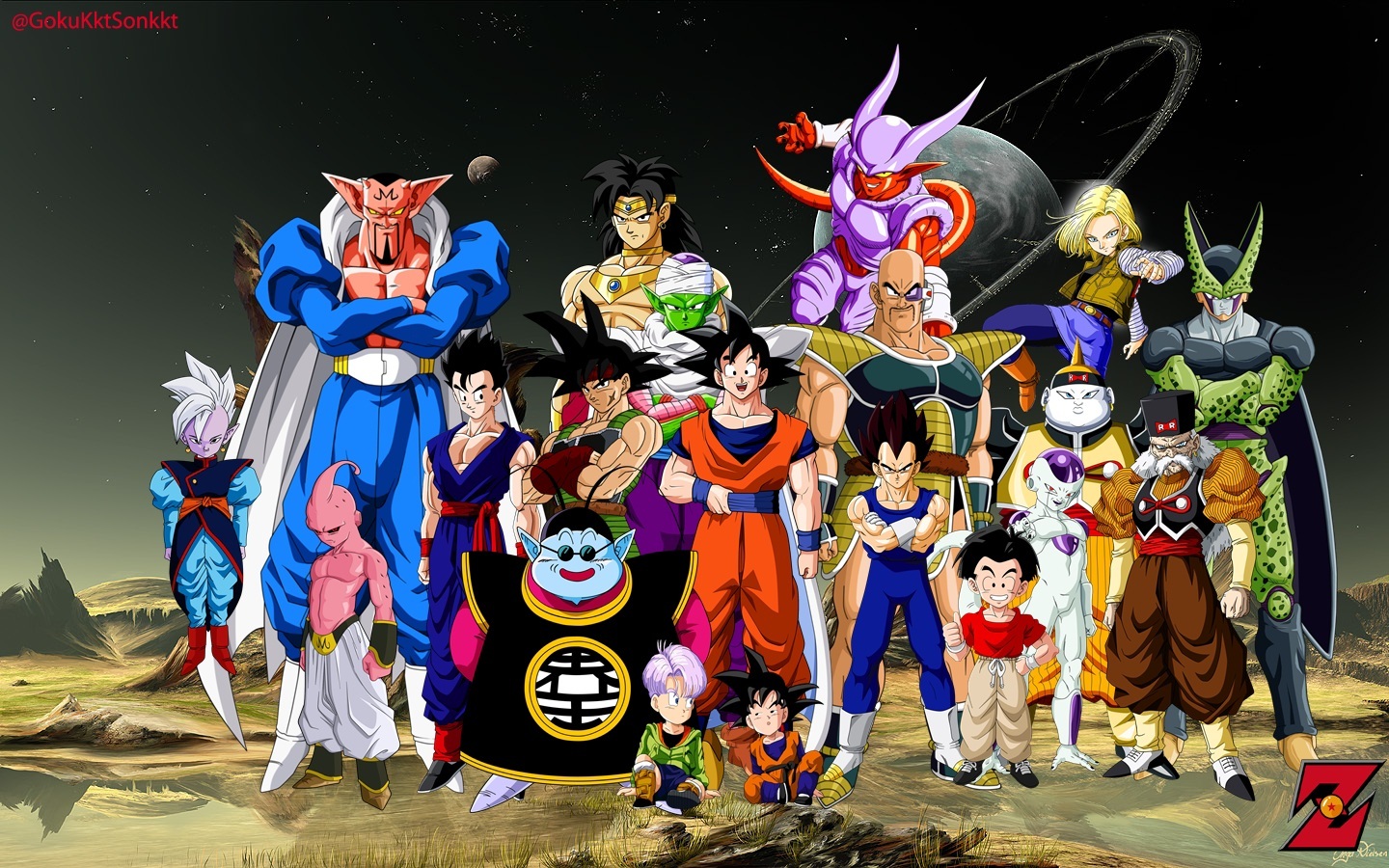 Description: A group of cartoon characters standing in front of a mountain at night time with a full moon in the background.