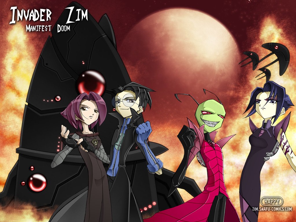 Description: A group of cartoon characters standing in front of a red moon and a black and white background with a red moon.