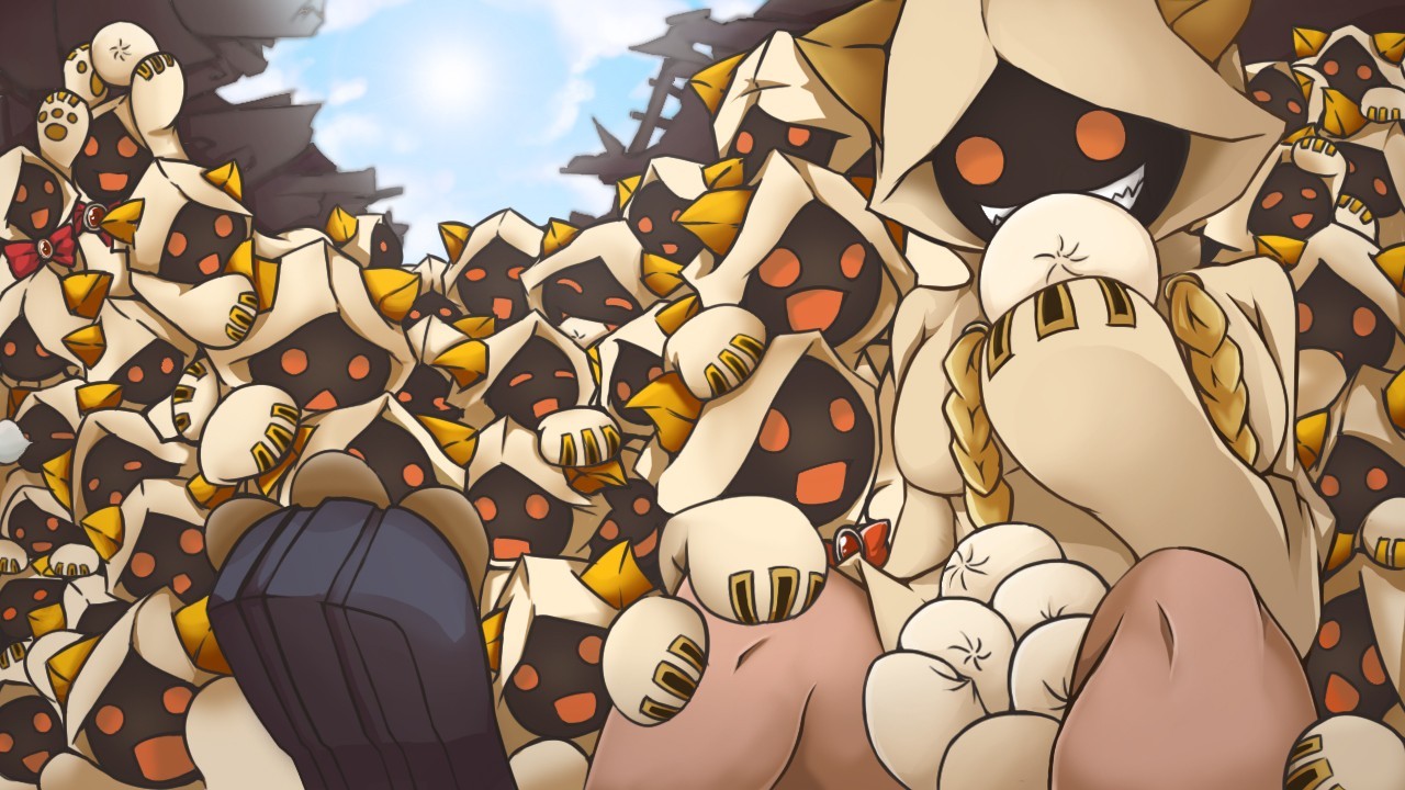Description: A bunch of cartoon characters are sitting together in a crowd of people with their feet up on a stool.