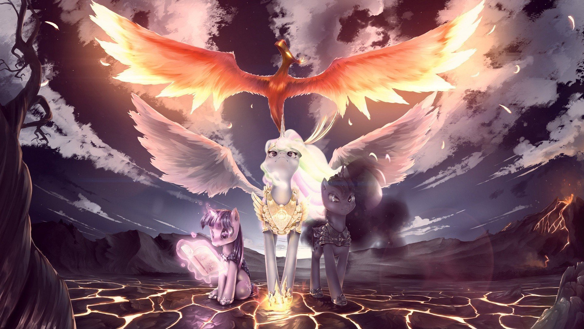 Description: A group of cartoon characters standing in front of a sky with clouds and a bird on it's back.