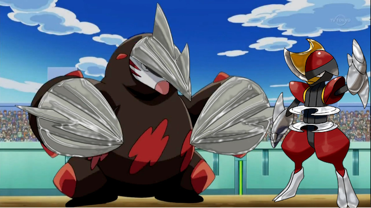 Description: Two cartoon characters in front of a stadium with a sky background and clouds in the background.