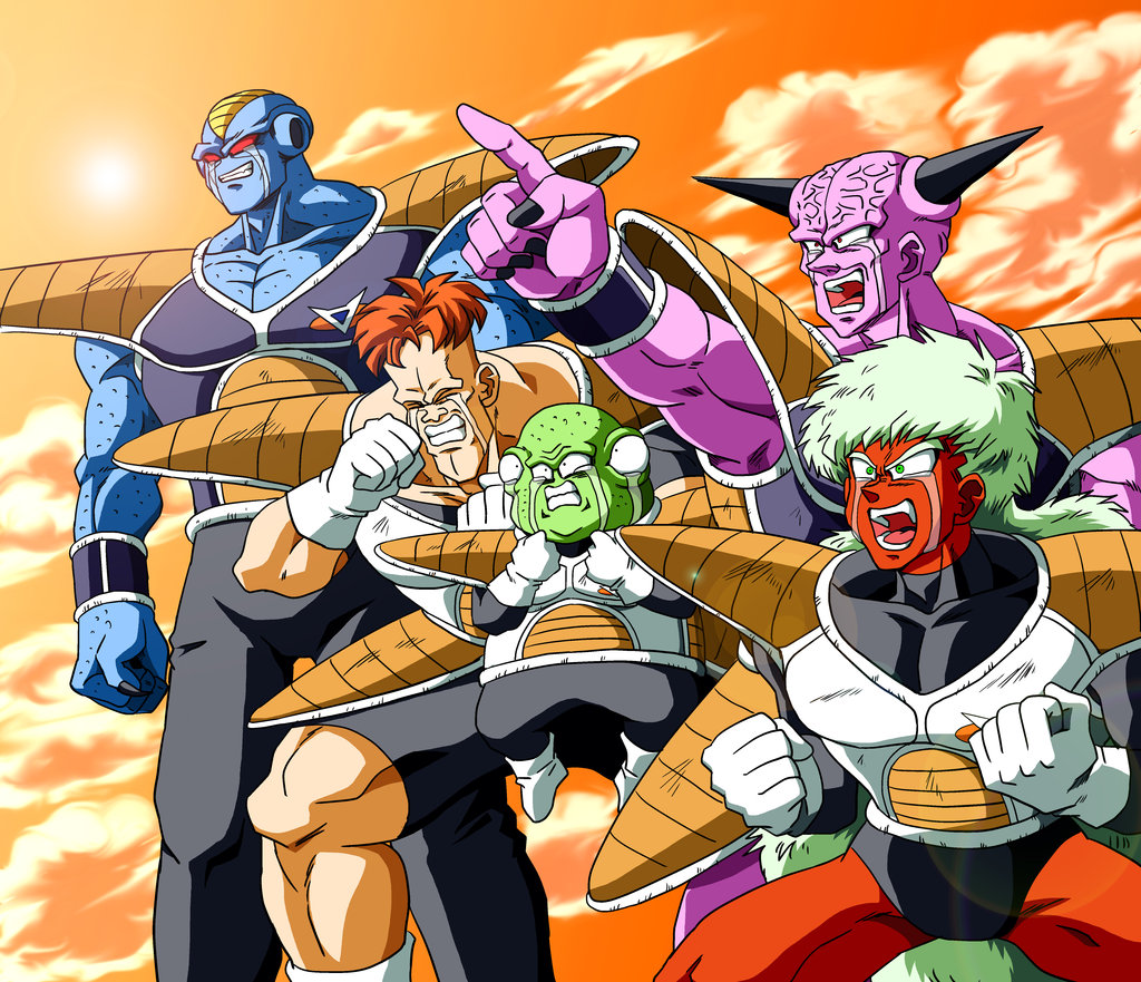 Description: A group of cartoon characters standing in front of a sunset background with one of them pointing at the camera.