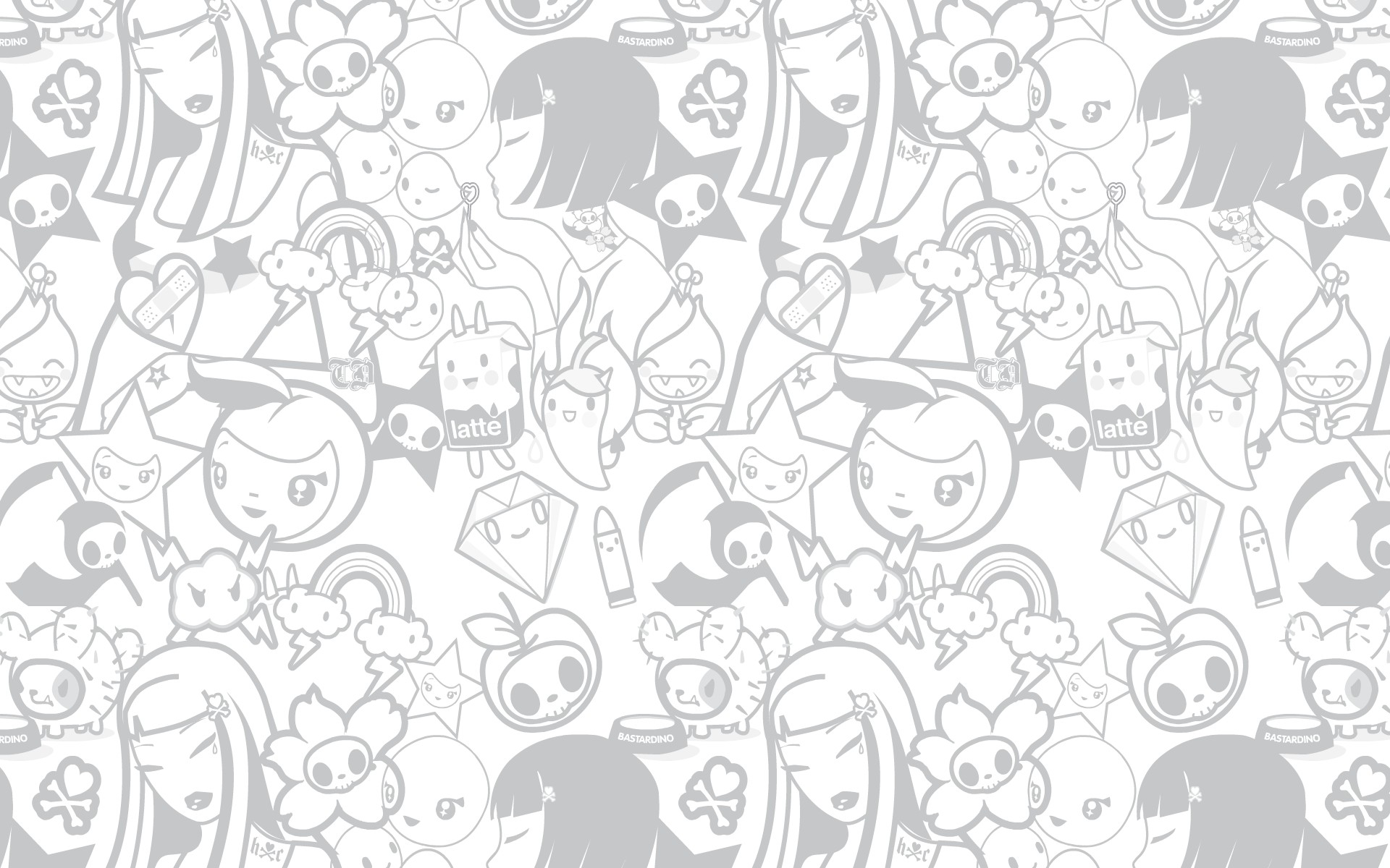 Description: A white and gray background with many cartoon characters on it.