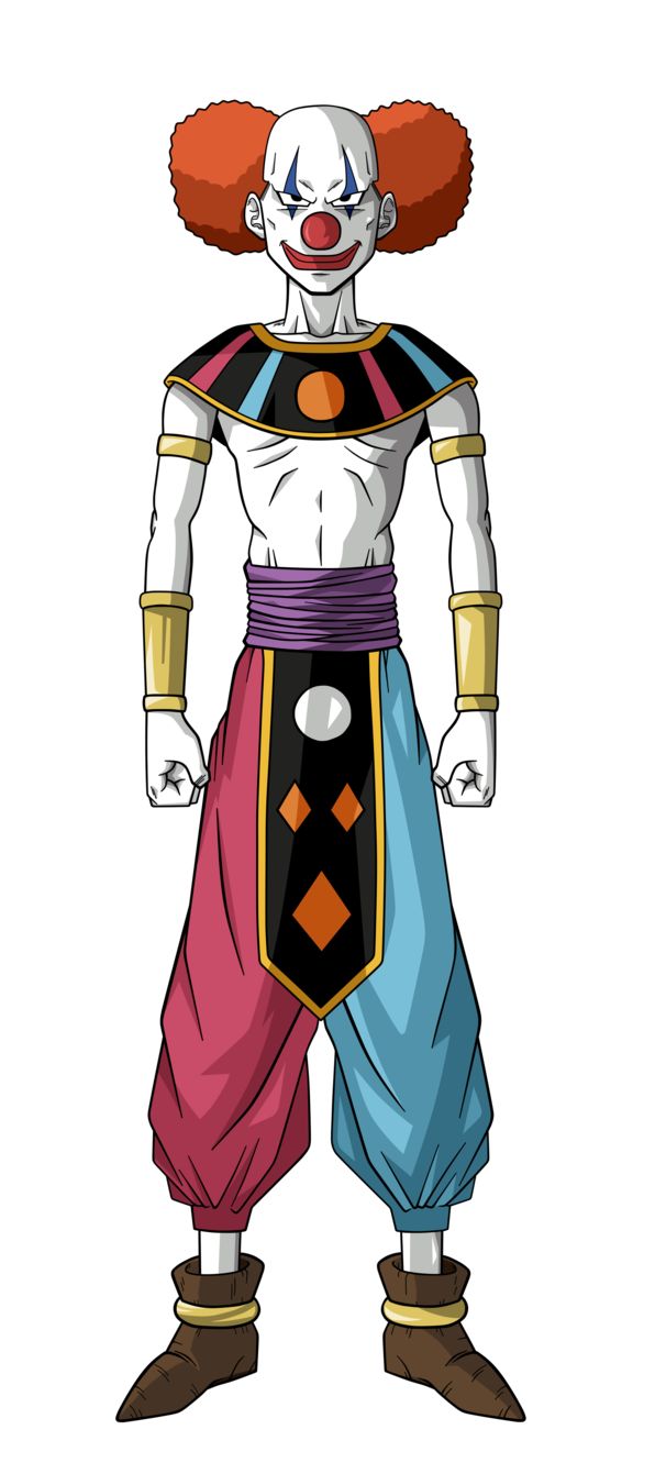 Description: A cartoon character with a clown face and a clown wig on his head.