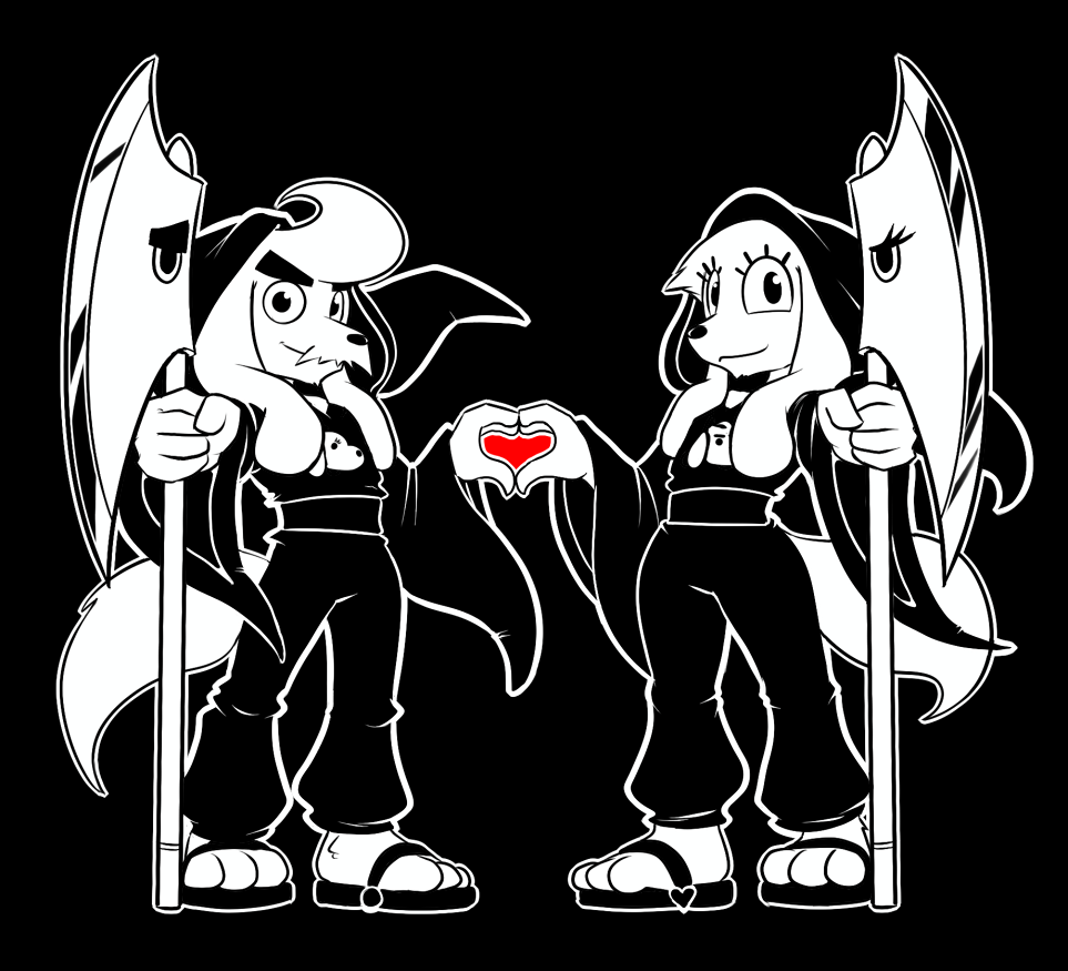 Description: A couple of cartoon characters standing next to each other with a heart in their hands and holding flags in their hands.
