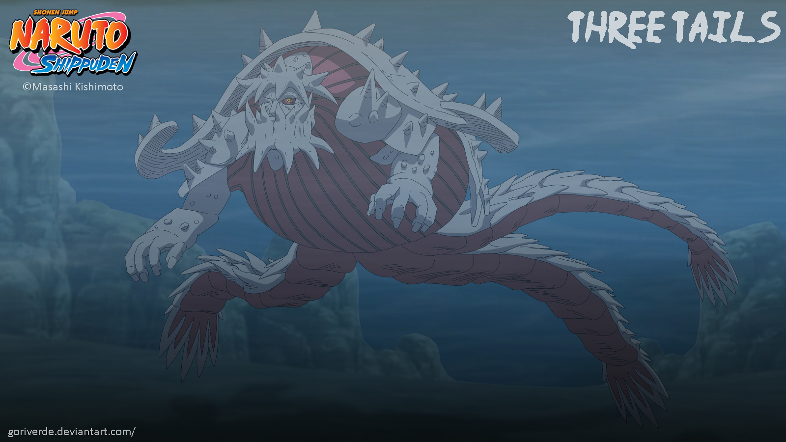 Description: A cartoon of a creature with a large head and a large body of water behind it.