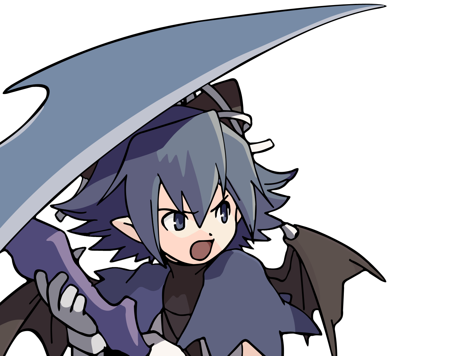 Description: A cartoon character holding a large knife and a sword in her hand.