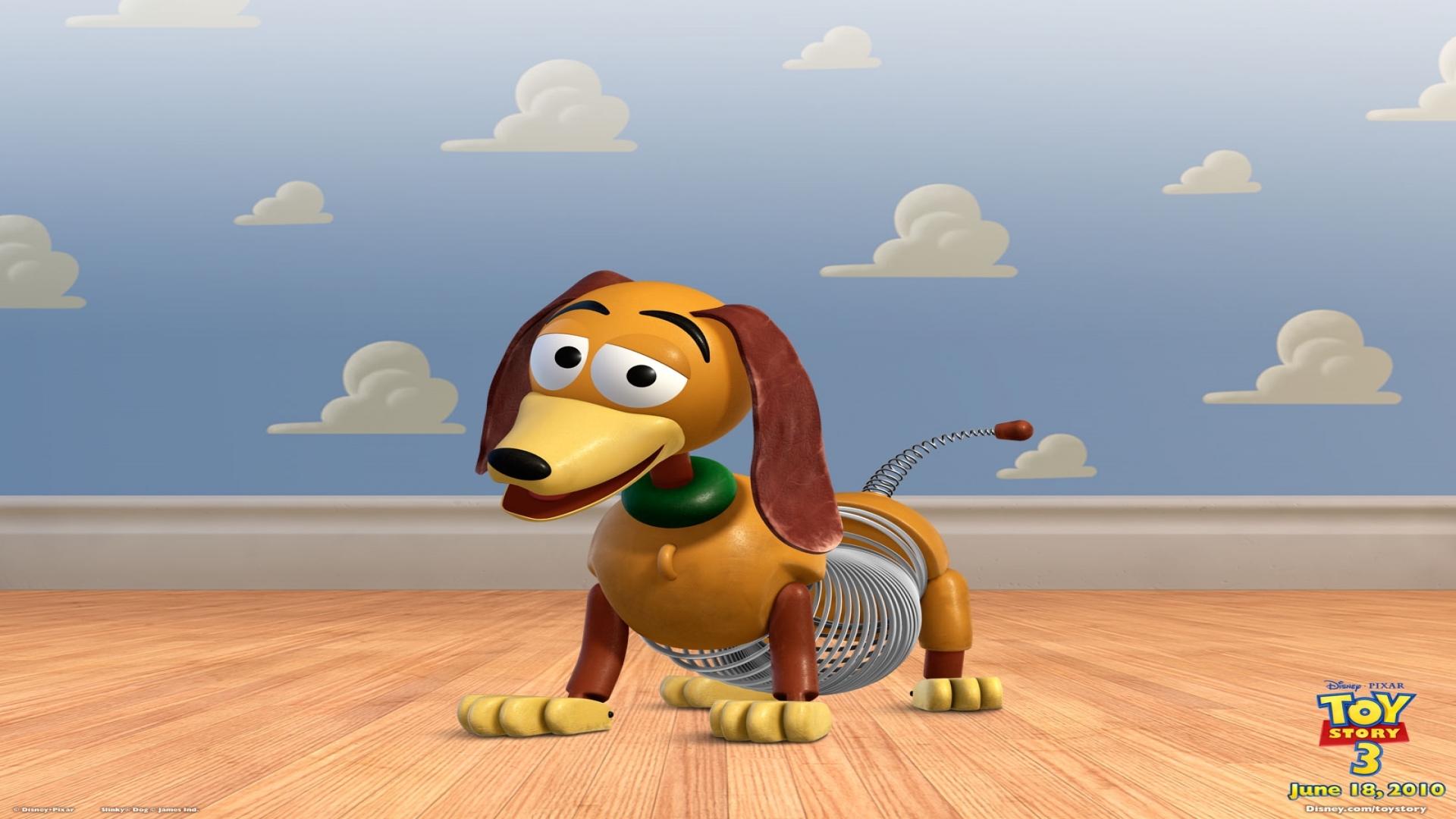 Description: A cartoon dog with a big nose and a big tail standing in a room with a blue wall and a wooden floor.