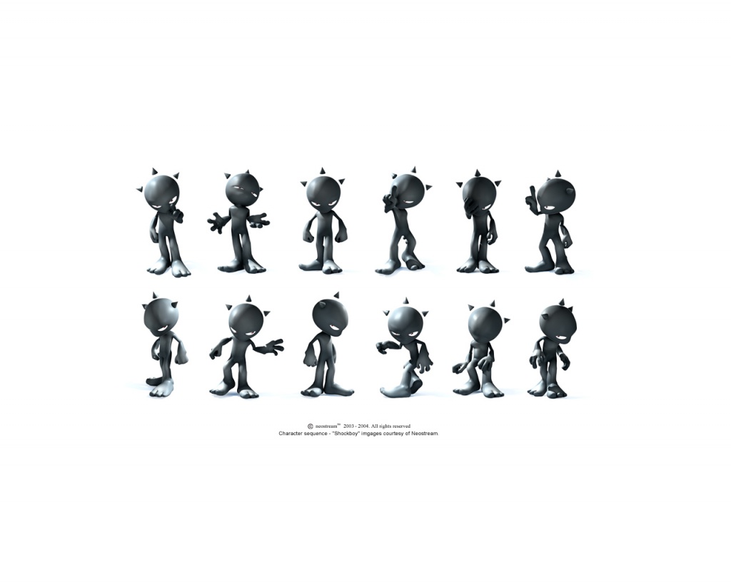 Description: A bunch of little cartoon figures standing in a row together in different poses.