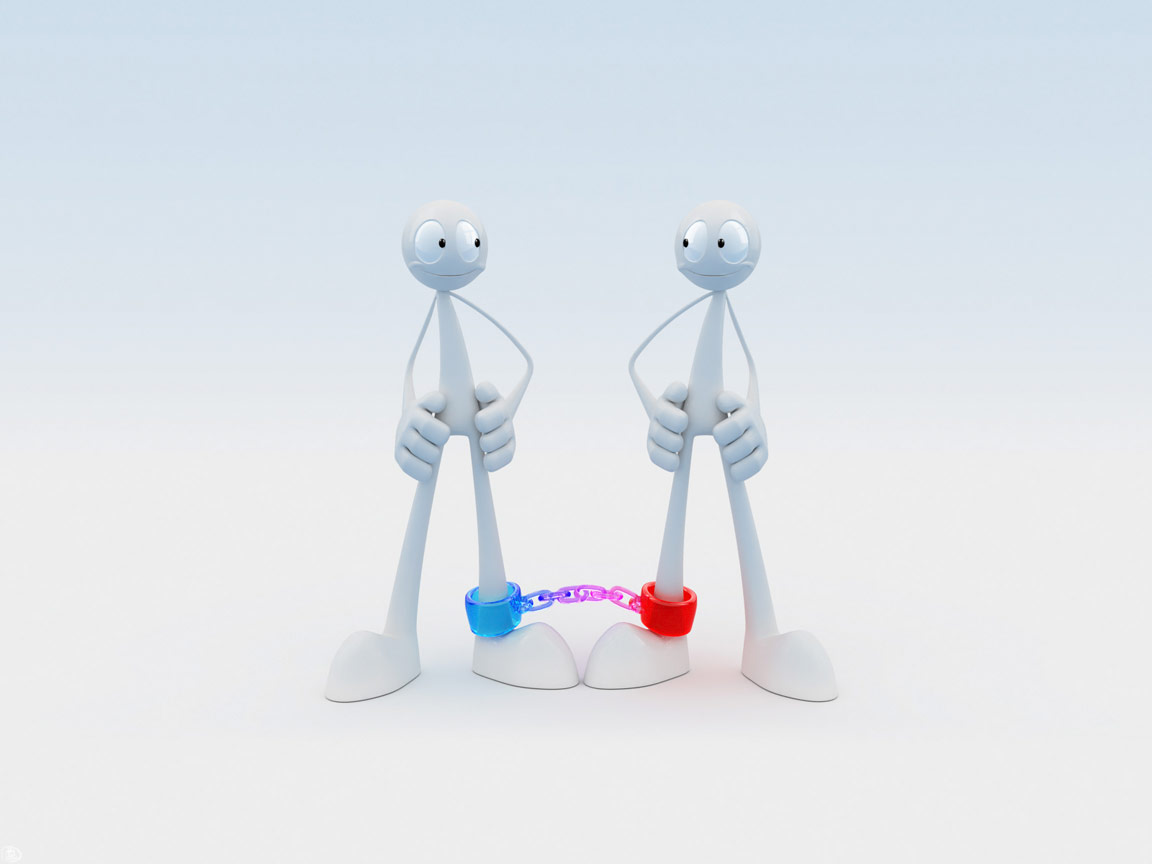 Description: Two cartoon figures with toothbrushes and toothpaste on a white background with a blue sky in the background.