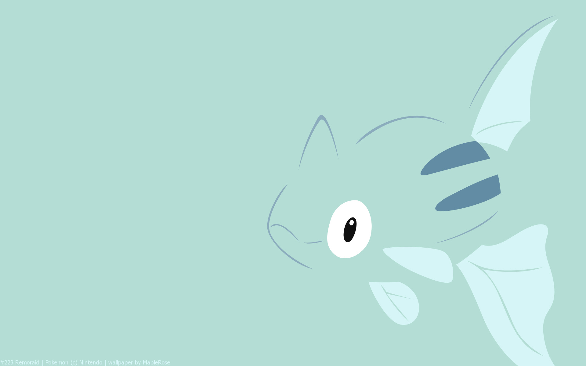 Description: A cartoon fish with a big eye and a tail is swimming in the water with a blue background and a light green background.