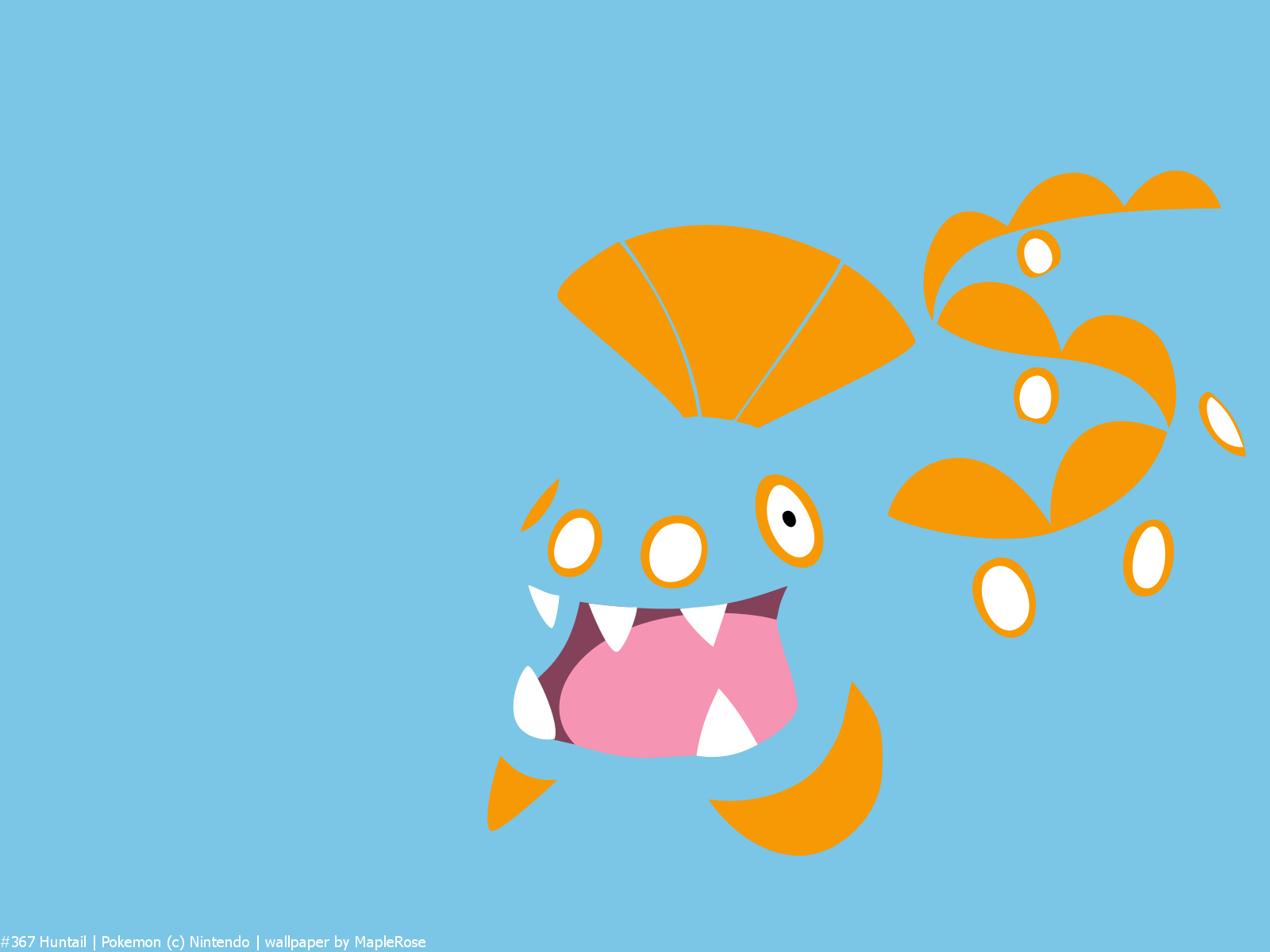 Description: A cartoon fish with a mouth full of teeth and a umbrella flying above it's head.