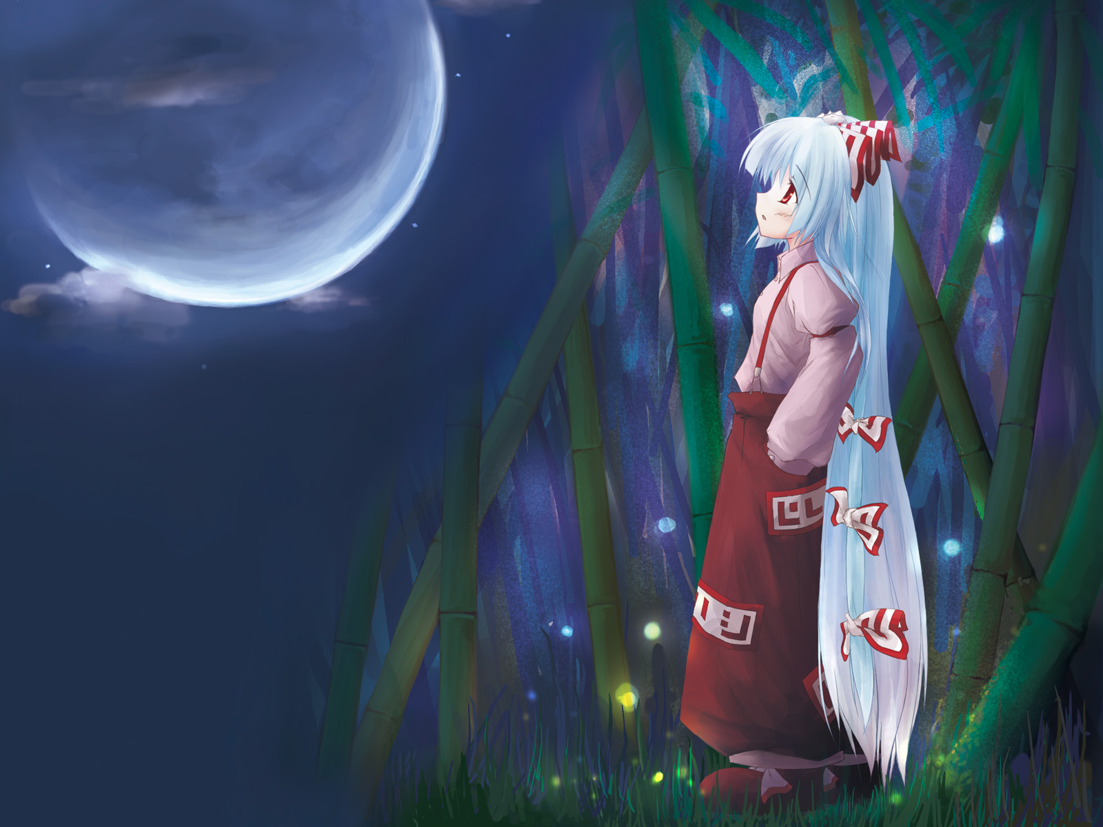 Description: A cartoon character standing in a forest with a full moon in the background and a full moon in the sky.