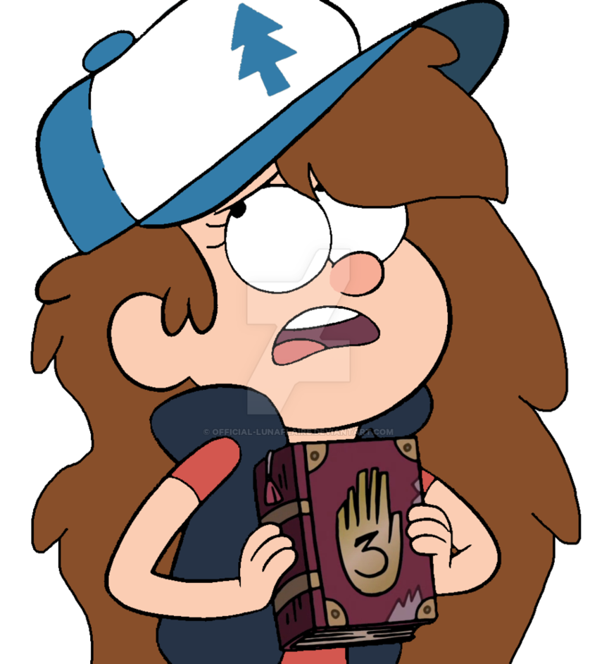 Description: A cartoon girl with a hat and a book in her hands and a surprised look on her face.