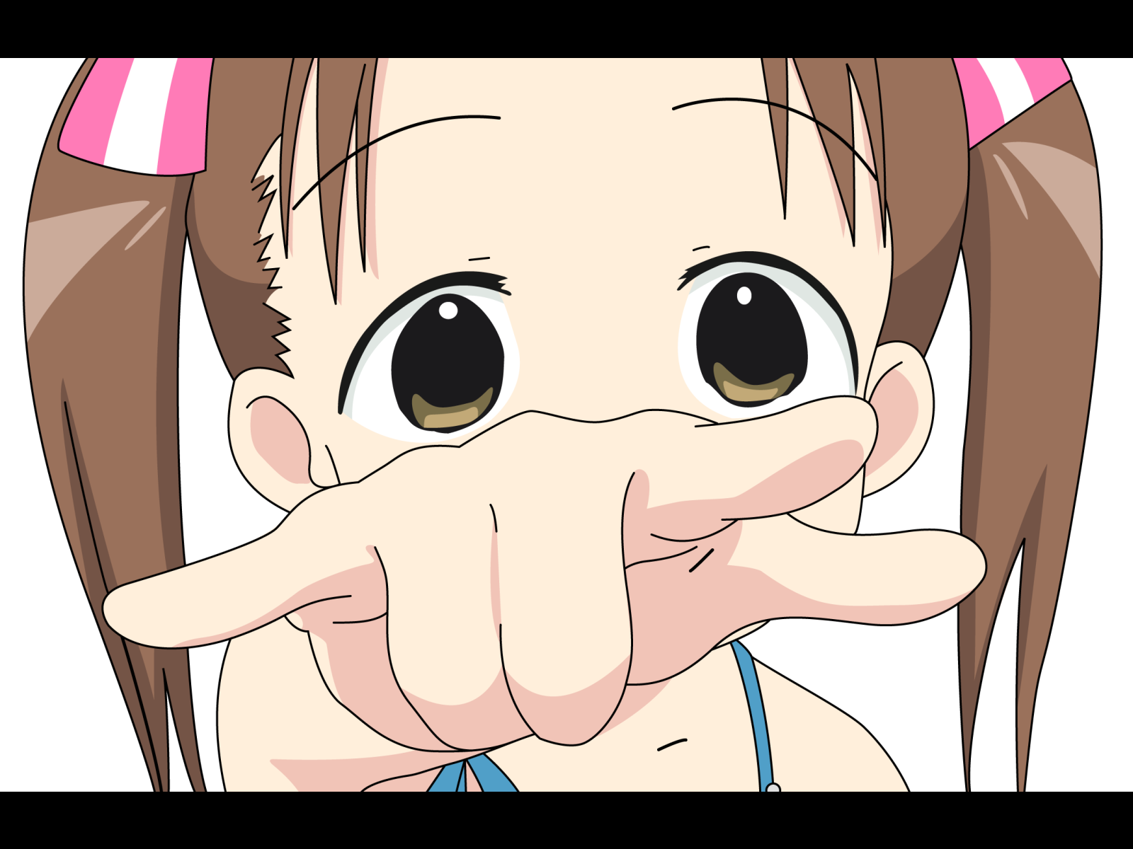 Description: A cartoon girl making a hand gesture with her finger to her mouth and a pink bow on her head.