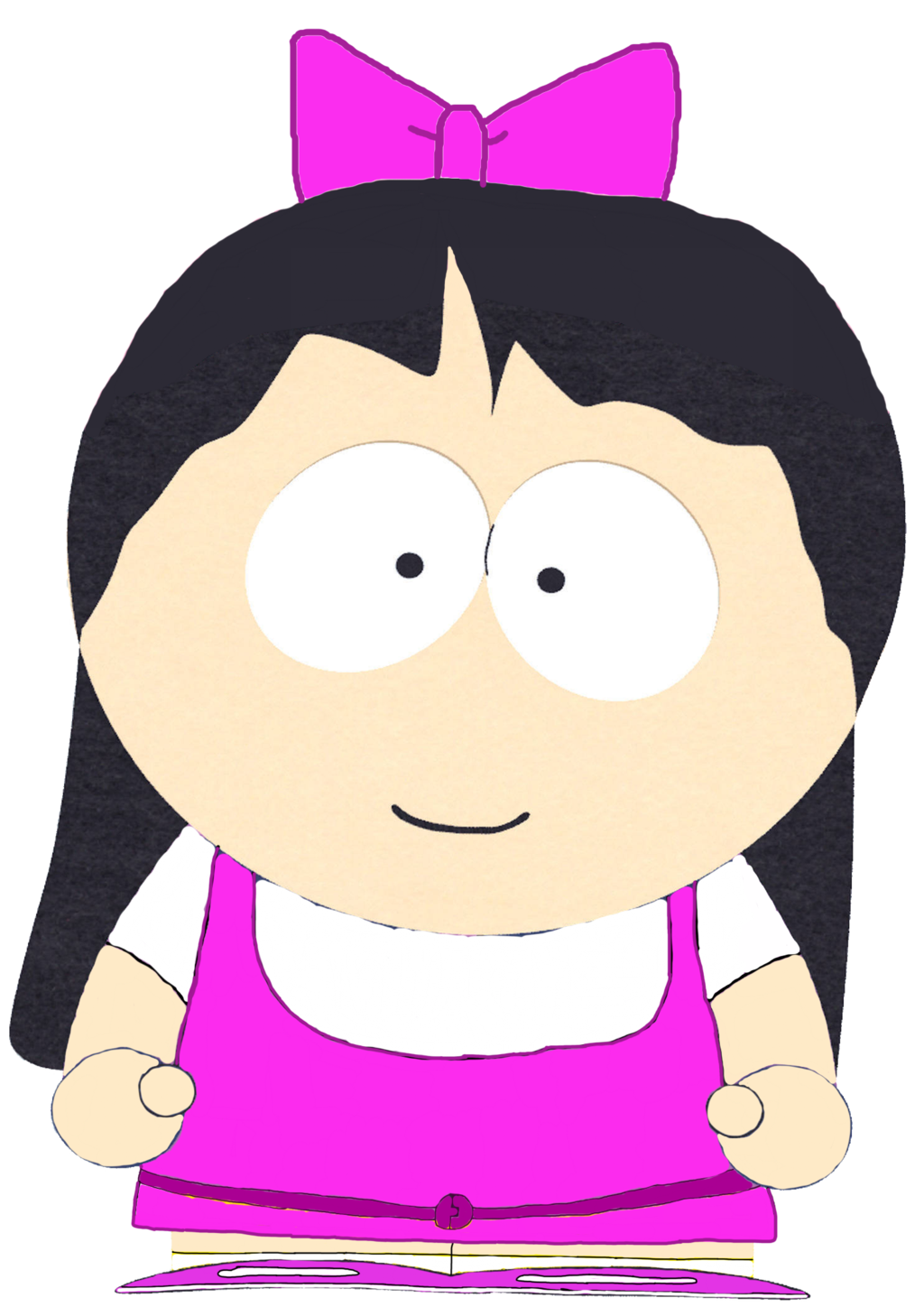 Description: A cartoon girl with a pink dress and a bow on her head.
