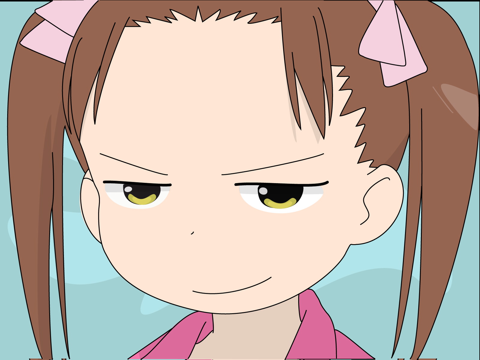 Description: A cartoon girl with a ponytail and a pink shirt on.