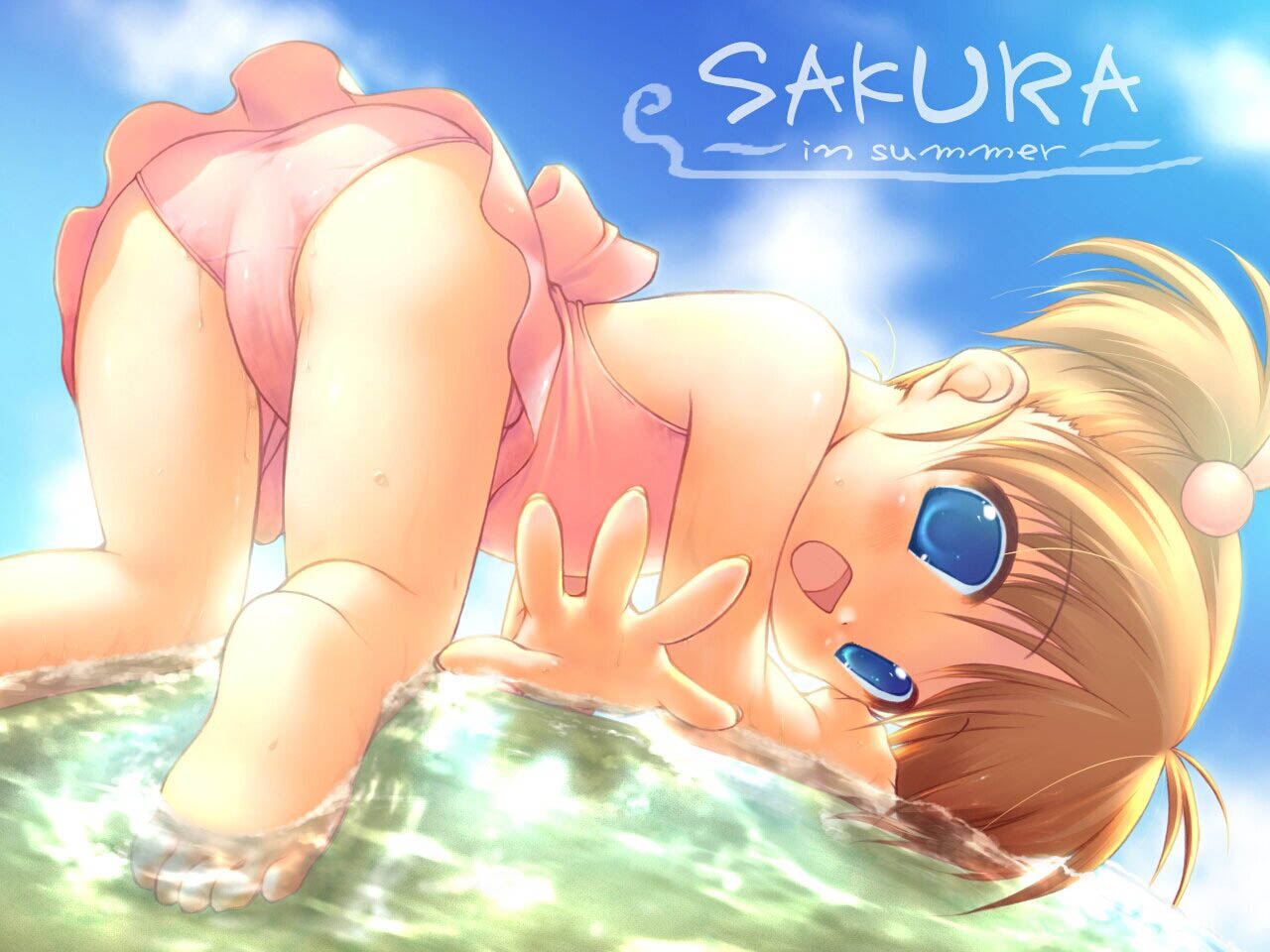 Description: A cartoon girl laying on top of a body of water with her eyes closed and her head tilted back.