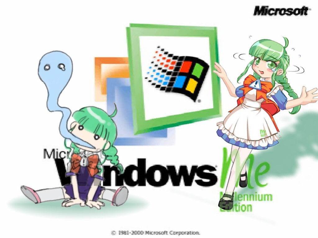 Description: A cartoon of a girl and a guy with windows logo on them and a ghost behind her.