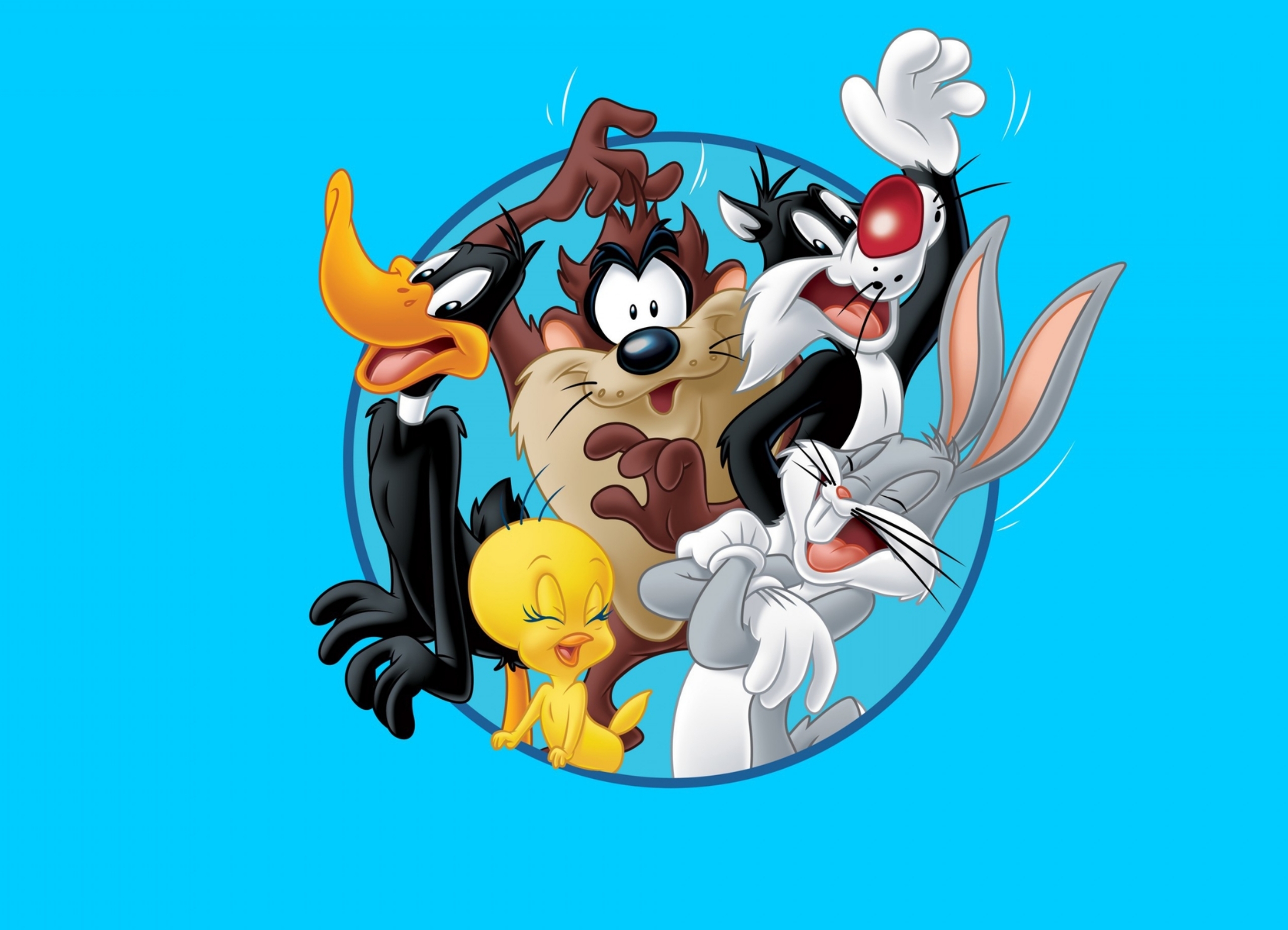 Description: A group of cartoon characters in a circle with a blue background and a blue background with a blue background.