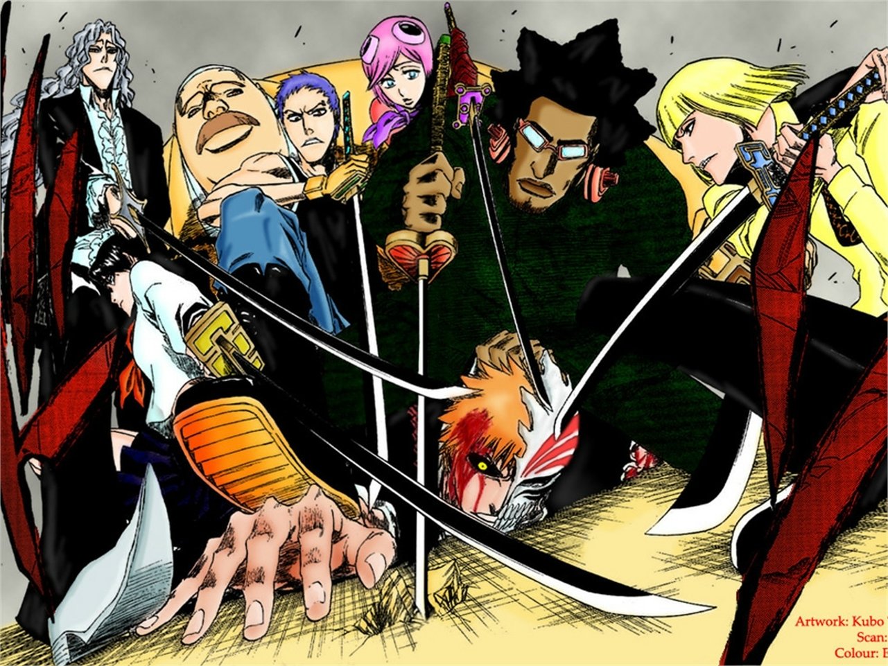 Description: A cartoon of a group of people with swords and swords in their hands.
