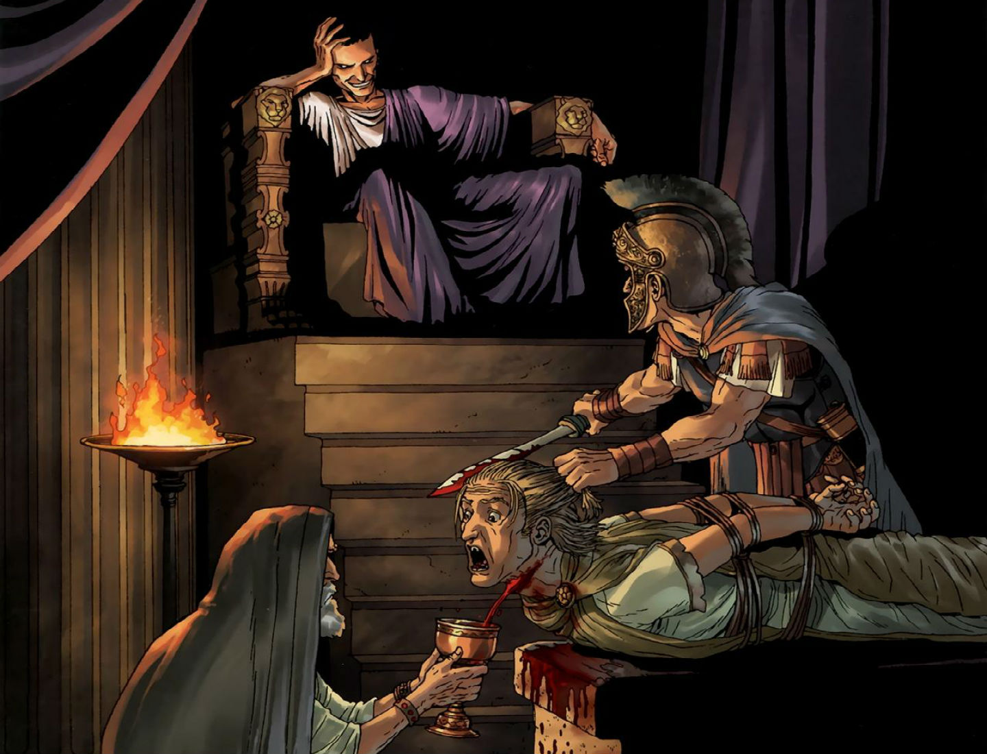 Description: A cartoon of a man being offered a candle to a woman in bed with a man on the bed.