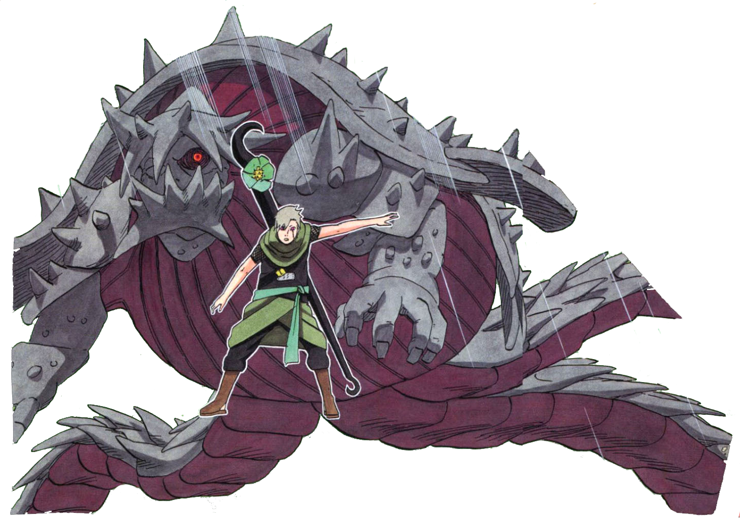 Description: A cartoon of a man standing next to a dragon with a sword in his hand and a demon in the background.