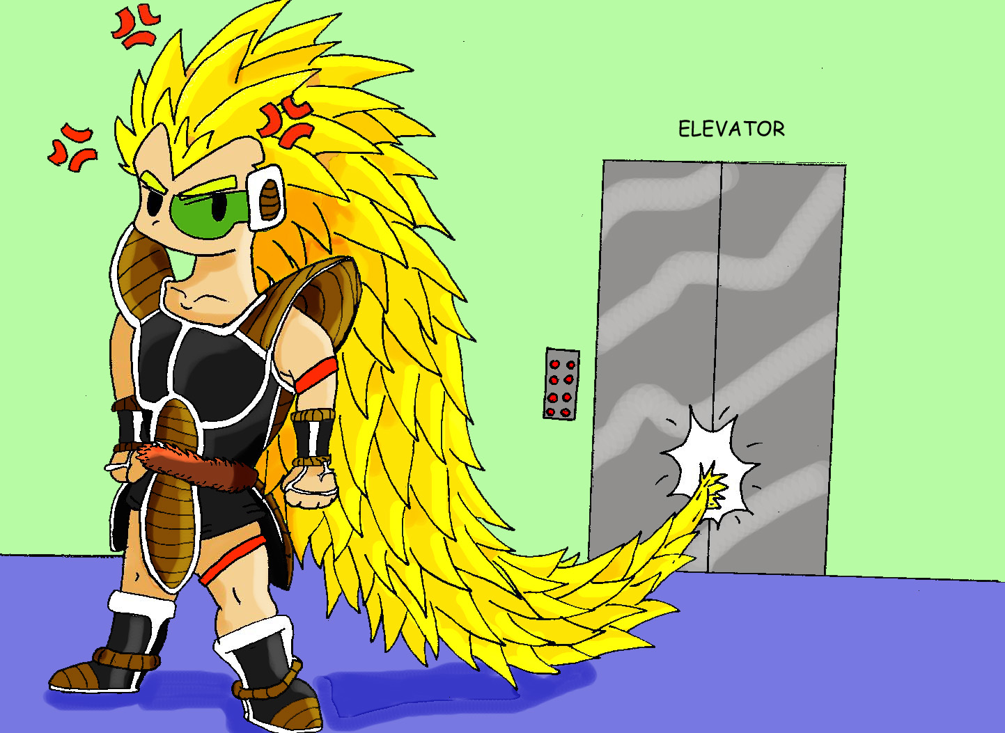 Description: A cartoon of a man with a feathered tail and sunglasses on.