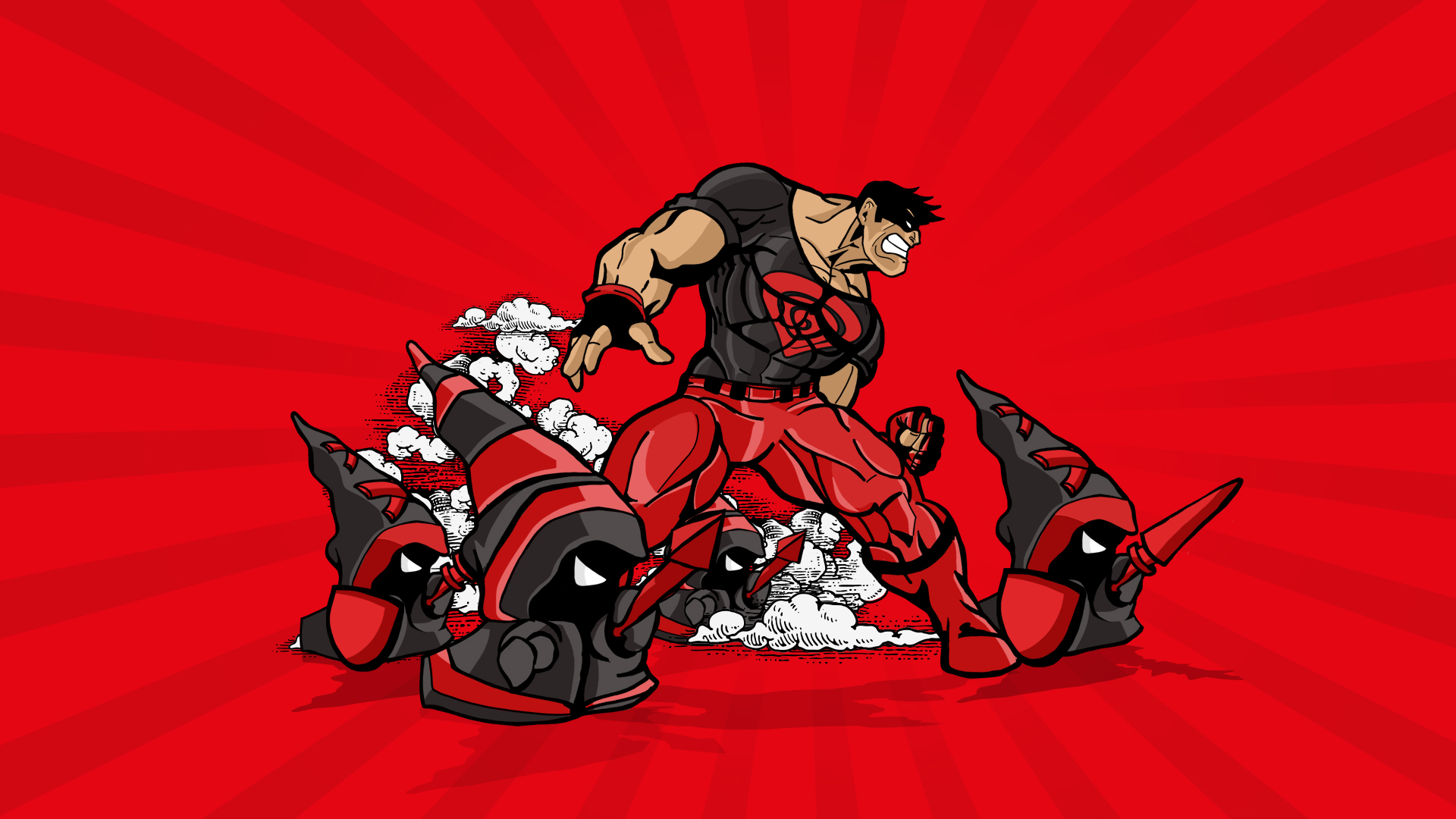 Description: A cartoon of a man in a red suit running with a red background and a red background behind him.