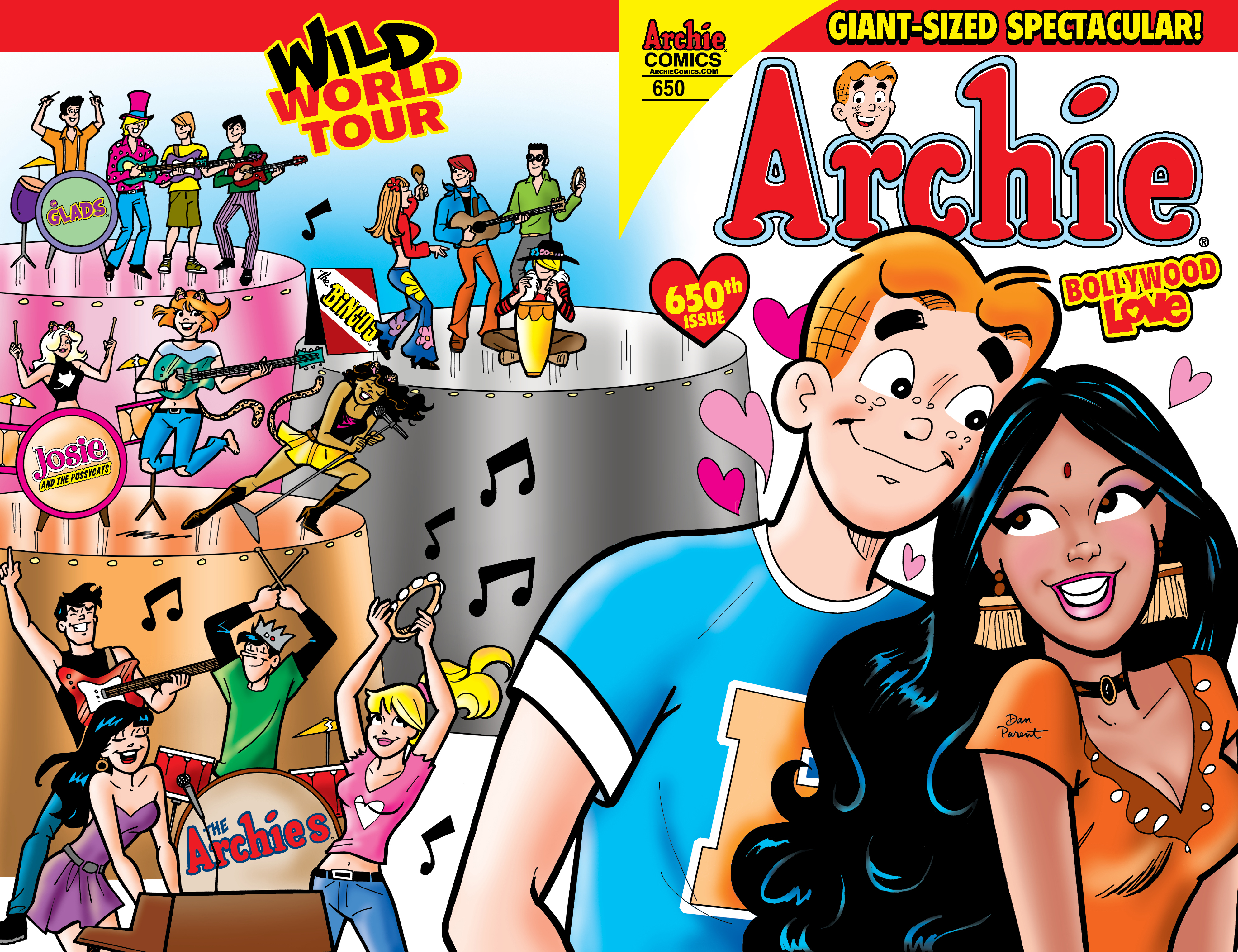 Description: A cartoon of a man and woman standing next to each other in front of a music band and a stage.