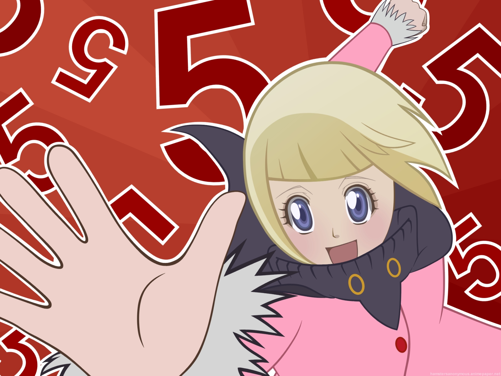 Description: A cartoon character with a pink coat and a hand up in the air with numbers behind her and a red background.