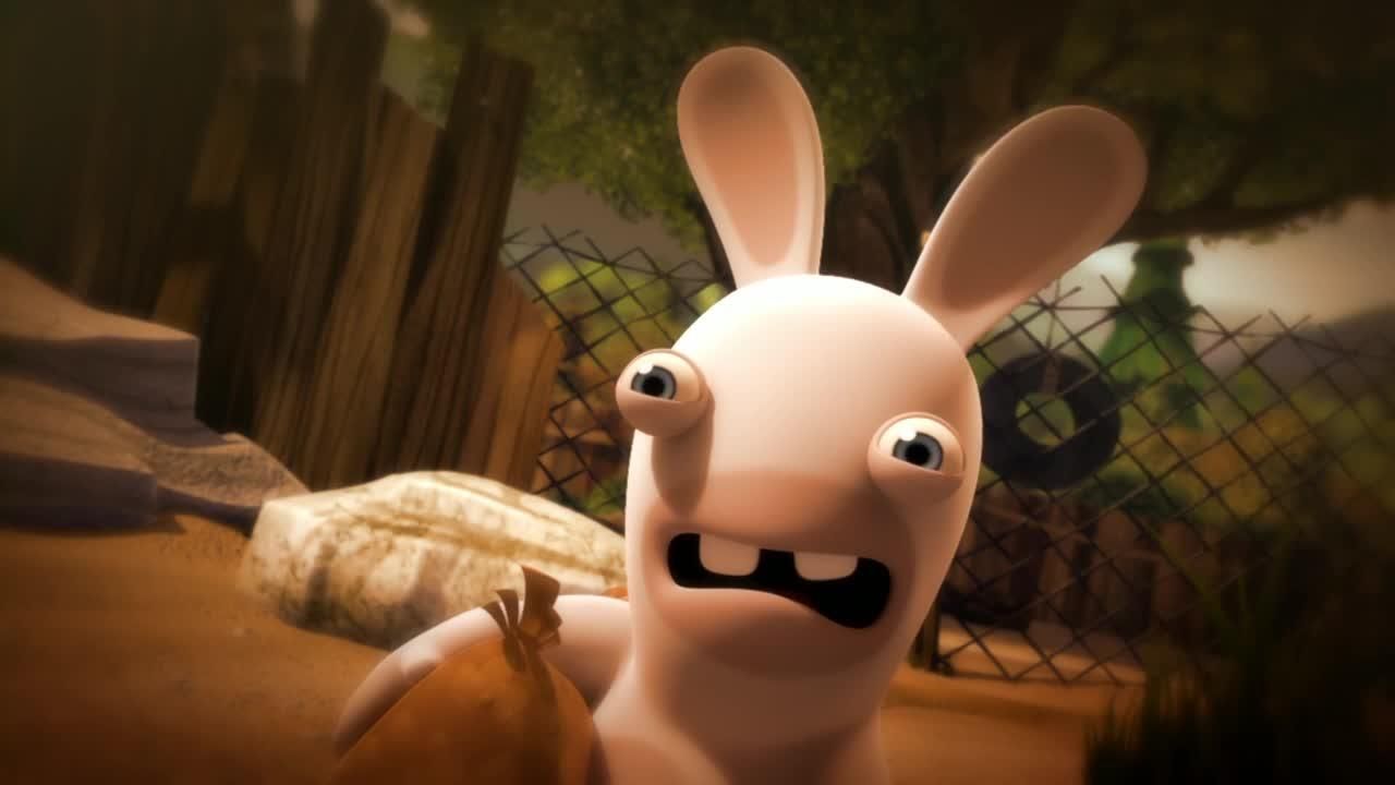 Description: A cartoon rabbit with a funny face and a big smile on its face.
