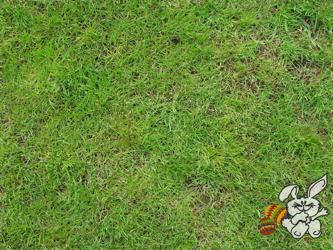 Description: A patch of grass with a cartoon rabbit on it's side and a red and white striped object in the grass.
