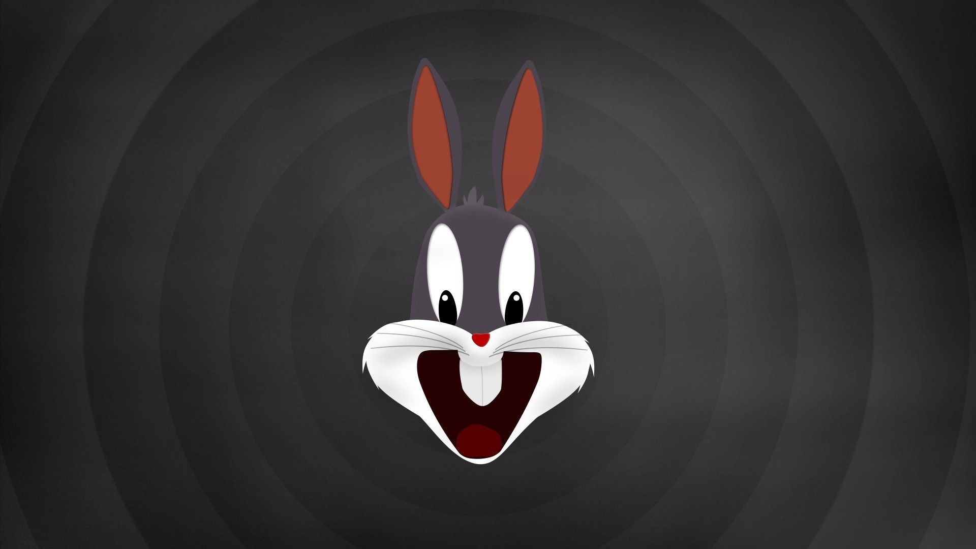 Description: A cartoon rabbit with a red nose and a black background with a circular pattern in the background and a black background with a red and white stripe.