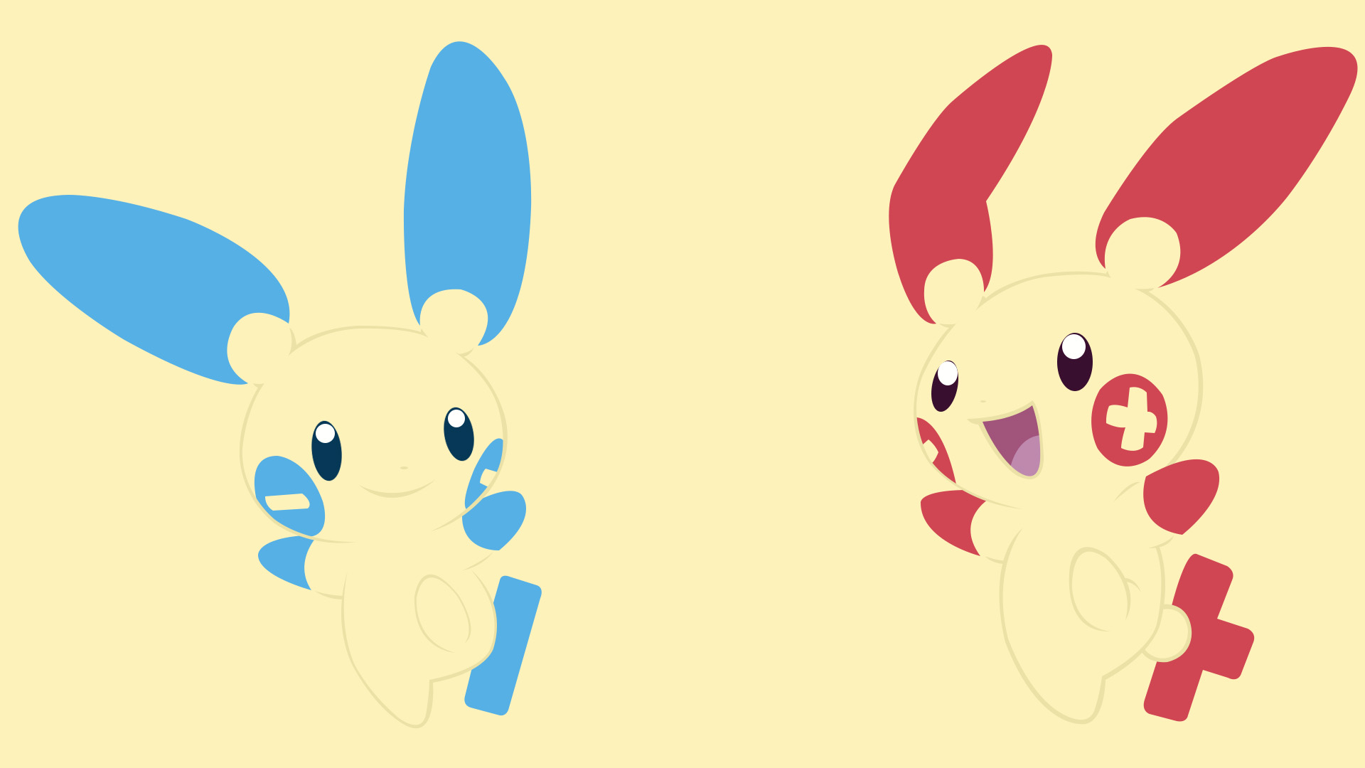Description: Two cartoon rabbits with different colors and sizes of ears and ears.