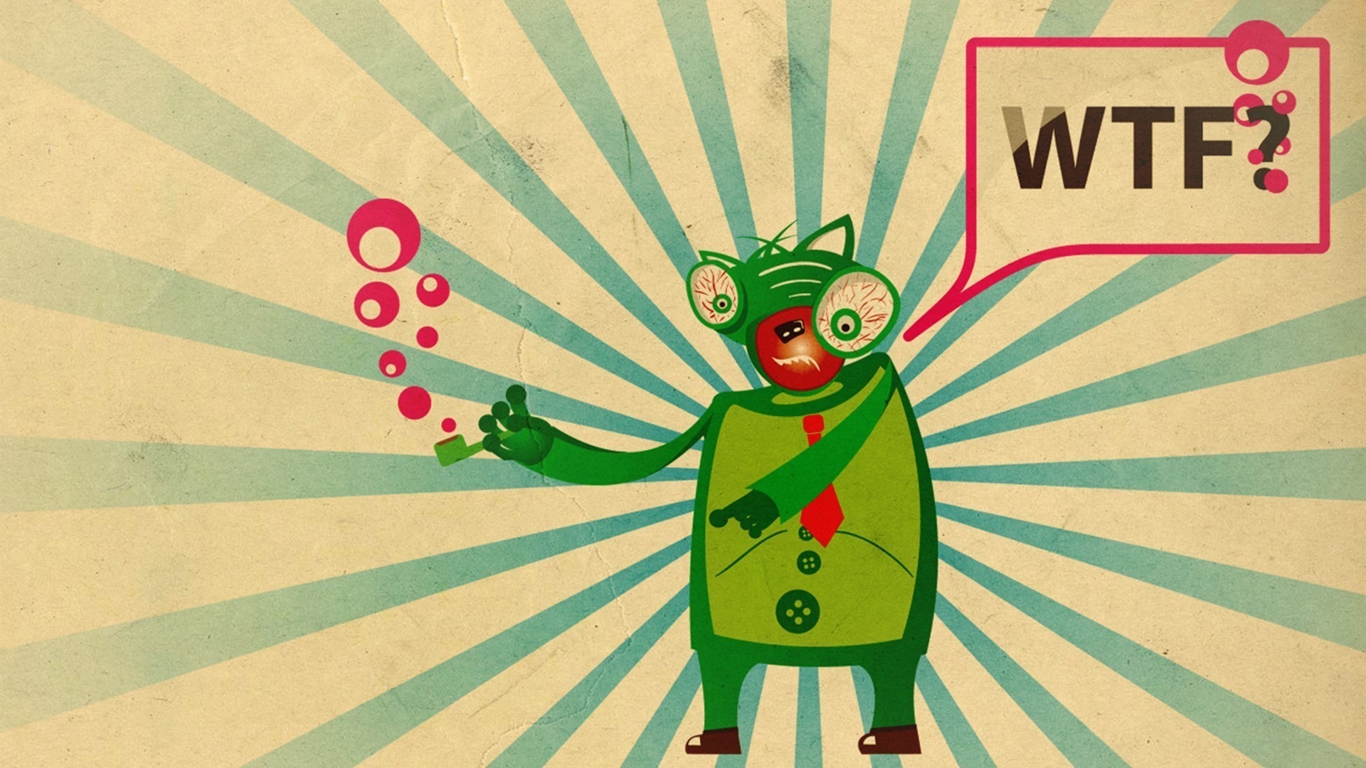 Description: A cartoon character with a speech bubble and a wft sign above it that says wft? on a blue and green background.