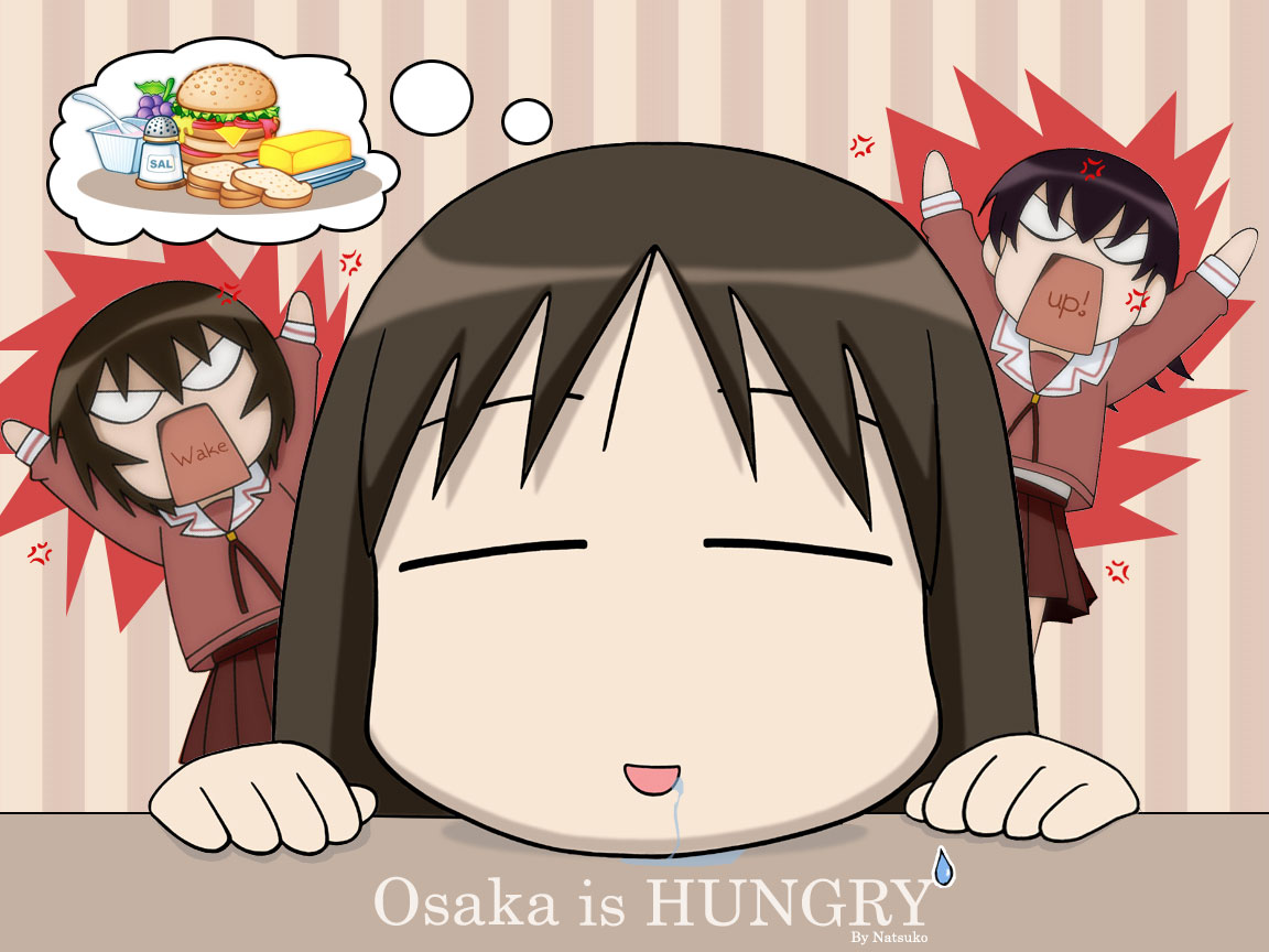 Description: A cartoon of a woman with a burger in her mouth and another woman with a burger in her mouth.