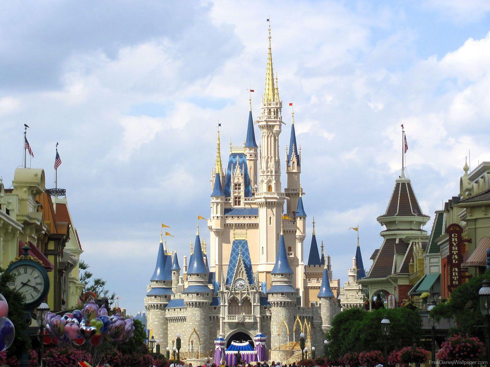 Description: A castle with a clock on it in the middle of a street with people walking around it and a crowd of people walking around.