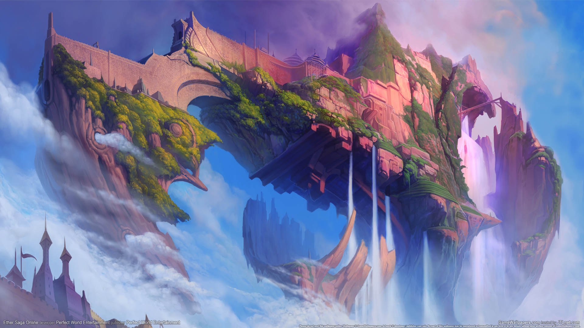 Castle sky waterfall man fantasy - free wallpaper for desktop | 5desktop.com