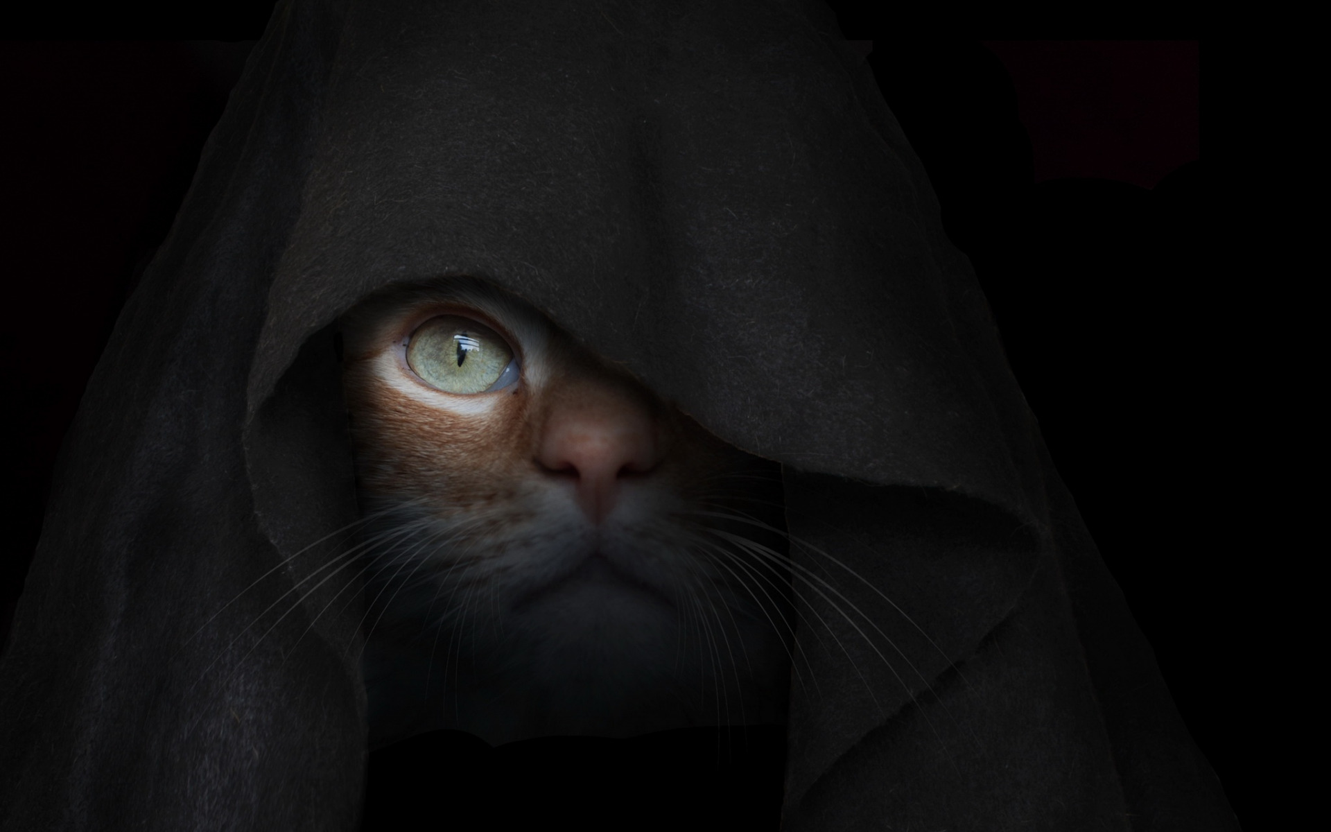 Description: A cat with a hooded look on its face and eyes.